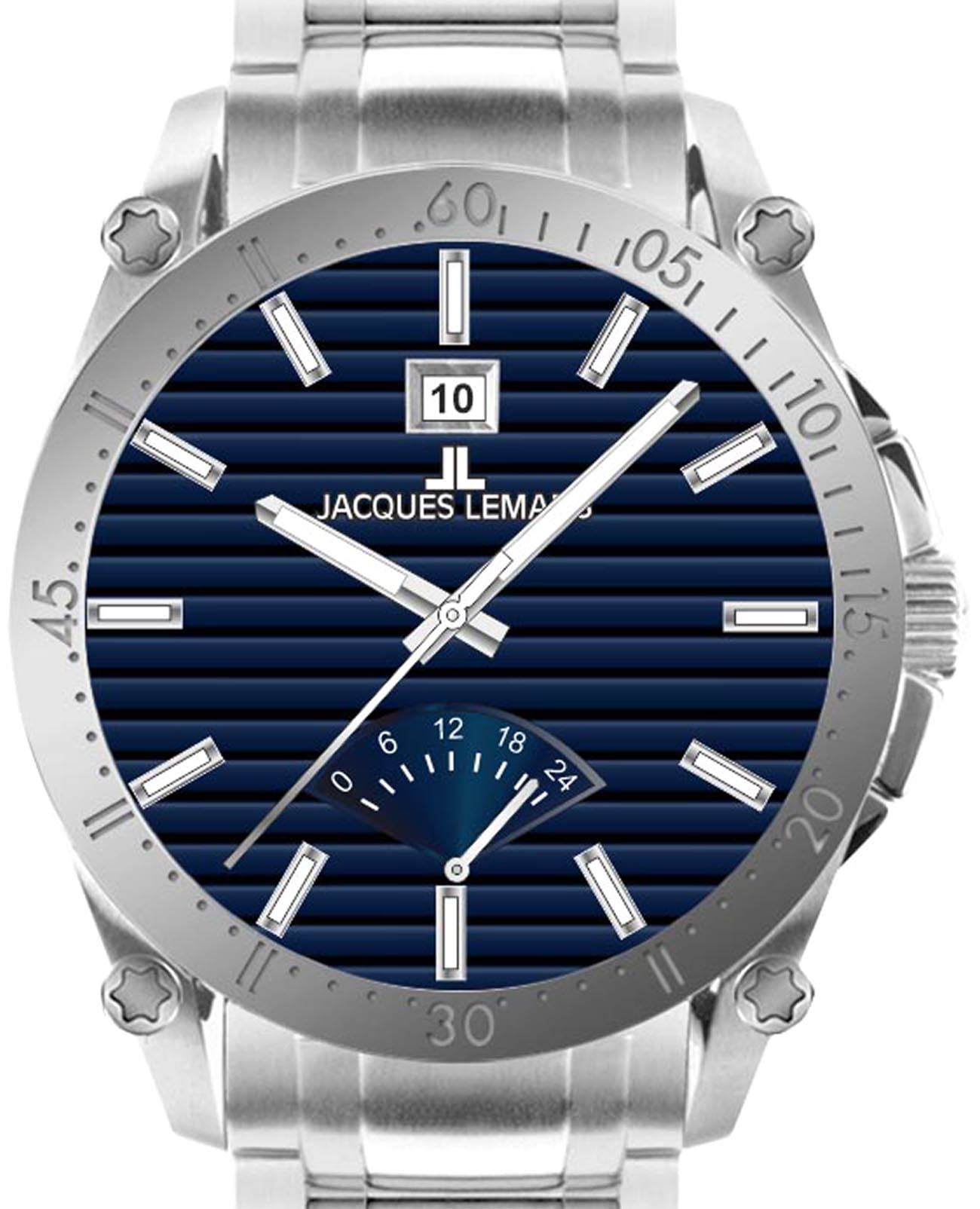 Мужские кварцевые часы Jacques Lemans 1-2202L – лаконичная красота и изысканная элегантность. Оригинальная модель с классическим оформлением станет превосходным завершением образа, наделив его индивидуальным характером. Корпус выполнен из нержавеющей стали, диаметром 44 мм, что обеспечивает долговечность и утончённый внешний вид. Минеральное стеклоМинеральное стеклоМинеральное стекло представляет собой искусственно выращенный минерал кварца. Такое стекло отличается особой устойчивостью к повреждениям и царапинам. Уступает по некоторым качествам сапфировому стеклу. с сапфировым напылением защищает циферблат от царапин. Стальной браслет на раскладной застёжкеРаскладная застёжкаТакой тип застёжки используется только на браслетах из металла. Она никогда не раскрывается полностью, происходит разделение на 2 и более частей. Раскладывающая застёжка снизит вероятность потери часов к минимуму. обеспечивает комфортное ношение. На неподвижный безельБезельВнешний ободок, закрепляющий стекло. В спортивных часах так называется поворотное кольцо с делениями на циферблате, выполняет роль таймера – замеряет отрезки времени на шкале. Неподвижный безель – элемент декора. Однонаправленно вращающийся безель на дайверских часах позволяет фиксировать моменты погружения и выныривания на поверхность. нанесена минутная шкала. Водозащита 100 метров позволит плавать, нырять и заниматься другими водными видами спорта. Стрелки и метки с люминесцентным покрытиемЛюминесцентное покрытиеПозволяет считывать показания времени в темноте. Производители наносят на стрелки, часовые индексы, безель или поверхность циферблата светонакопительный состав, дающий холодное свечение. позволяющие легко определять время даже в темноте. Окошко даты находится в положении 12 часов. Индикатор 24-х часов вынесен на отдельный циферблат. Рифленая заводная головка с защитой. Это аксессуар для мужчины, который ценит классический стиль и функциональность.