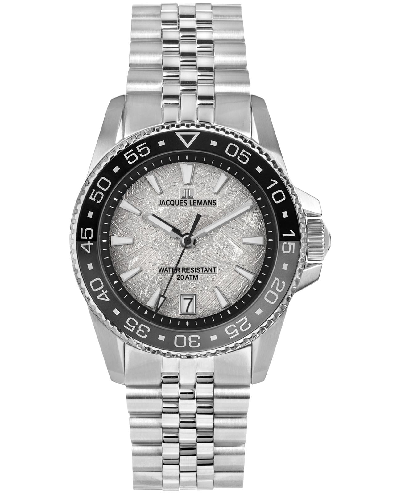 Мужские спортивные часы Jacques Lemans Liverpool Diver 1-2205L представляют собой стильный аксессуар, отражающий идеальное сочетание современного дизайна, надёжности и функциональности. Корпус из нержавеющей стали диаметром 41 мм идеально сбалансирован и элегантен. Ударопрочное минеральное стеклоМинеральное стеклоМинеральное стекло представляет собой искусственно выращенный минерал кварца. Такое стекло отличается особой устойчивостью к повреждениям и царапинам. Уступает по некоторым качествам сапфировому стеклу. Crystex защищает циферблат от царапин. Широкий безельБезельВнешний ободок, закрепляющий стекло. В спортивных часах так называется поворотное кольцо с делениями на циферблате, выполняет роль таймера – замеряет отрезки времени на шкале. Неподвижный безель – элемент декора. Однонаправленно вращающийся безель на дайверских часах позволяет фиксировать моменты погружения и выныривания на поверхность. с PVD-покрытиемPVDУльтратонкое покрытие наносится в технике вакуумного напыления, сочетает в себе нитрид титана особой прочности со слоем золота или оксида хрома. Несёт в себе декоративную или защитную функцию., на который вынесена дополнительная индикация секунд. Стальной браслет на раскладной застёжке с фиксаторомРаскладная застёжкаТакой тип застёжки используется только на браслетах из металла. Она никогда не раскрывается полностью, происходит разделение на 2 и более частей. Раскладывающая застёжка снизит вероятность потери часов к минимуму. обеспечивает комфортное ношение. Водозащита 200 метров позволит плавать, нырять и заниматься другими водными видами спорта. Стрелки и метки с люминесцентным покрытиемЛюминесцентное покрытиеПозволяет считывать показания времени в темноте. Производители наносят на стрелки, часовые индексы, безель или поверхность циферблата светонакопительный состав, дающий холодное свечение. позволяющие легко определять время даже в темноте. Окошко даты находится в положении 6 часов. Это аксессуар для мужчины, который ценит классический стиль и функциональность.