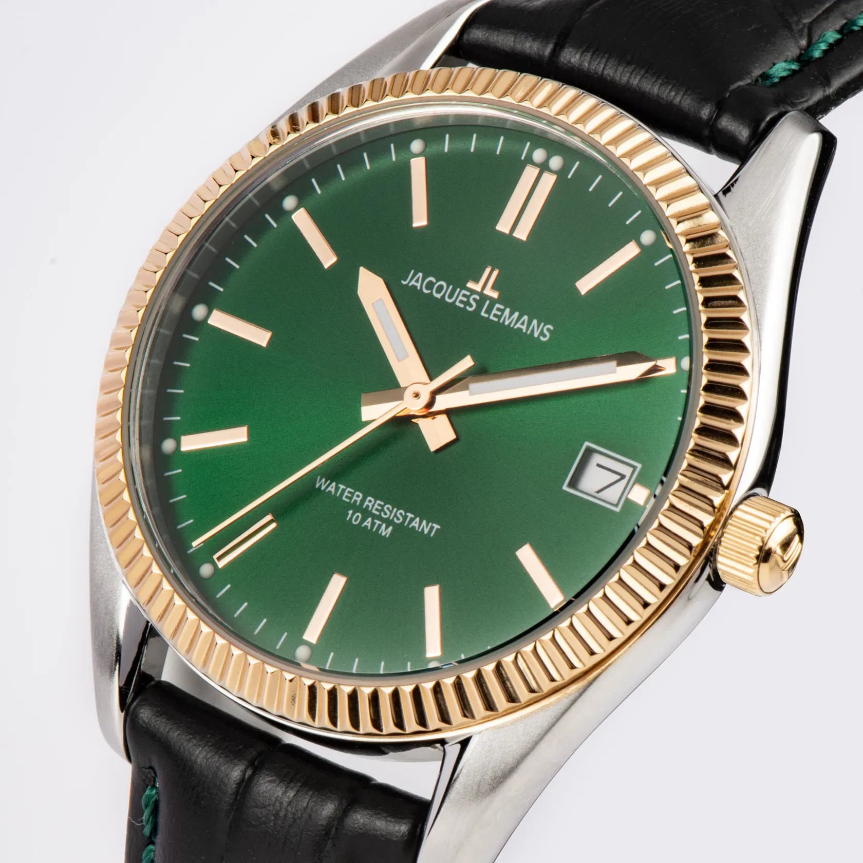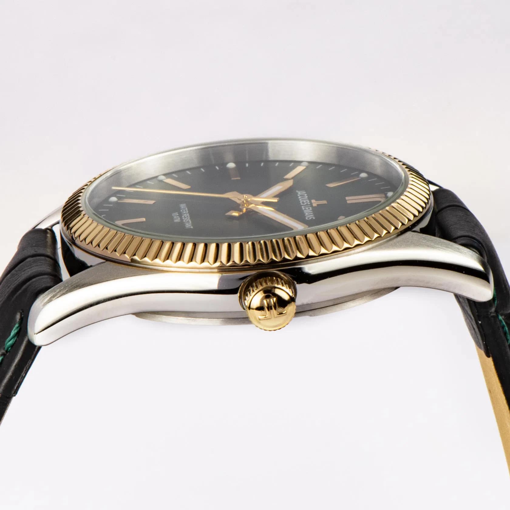 Женские часы Jacques Lemans Derby 50-4W с минеральным стекломМинеральное стеклоМинеральное стекло представляет собой искусственно выращенный минерал кварца. Такое стекло отличается особой устойчивостью к повреждениям и царапинам. Уступает по некоторым качествам сапфировому стеклу., кварцевый механизм с высокой точностью. Корпус часов из нержавеющей стали. Стрелки с люминесцентным покрытиемЛюминесцентное покрытиеПозволяет считывать показания времени в темноте. Производители наносят на стрелки, часовые индексы, безель или поверхность циферблата светонакопительный состав, дающий холодное свечение.. Окошко даты в положении 3 часа. Класс водозащиты: 100 метров, позволит плавать, нырять и заниматься другими водными видами спорта. Кожаный ремешок на стандартной застежке. БезельБезельВнешний ободок, закрепляющий стекло. В спортивных часах так называется поворотное кольцо с делениями на циферблате, выполняет роль таймера – замеряет отрезки времени на шкале. Неподвижный безель – элемент декора. Однонаправленно вращающийся безель на дайверских часах позволяет фиксировать моменты погружения и выныривания на поверхность. с PVD-покрытиемPVDУльтратонкое покрытие наносится в технике вакуумного напыления, сочетает в себе нитрид титана особой прочности со слоем золота или оксида хрома. Несёт в себе декоративную или защитную функцию..
