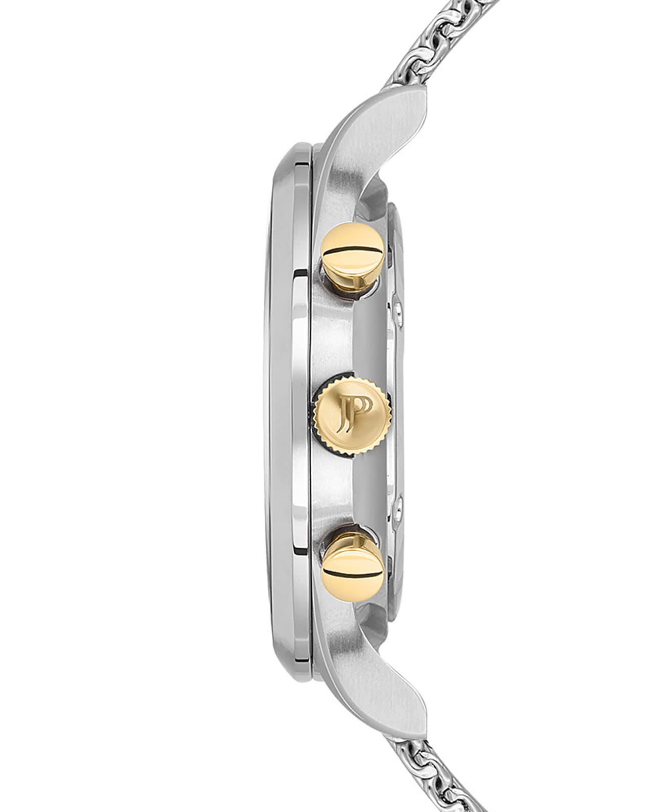Швейцарские мужские часы-хронографХронографФункция позволяет измерять отрезки времени с особой точностью: часы, минуты, секунды. Верным признаком хронографа является наличие на циферблате 3 дополнительных окошек-счётчиков. Jacques Philippe Gallant JPQGC031236, кварцевый механизм с высокой точностью. Сапфировое стеклоСапфировое стеклоПрочный и надёжный материал из кристалла сапфира синтетического происхождения, характеризующийся особой твёрдостью и устойчивостью к царапинам и повреждениям. устойчивое к появлению царапин, обладающее высокой прозрачностью. Корпус часов изготовлен из нержавеющей стали. На циферблате три дополнительных индикатора. Стрелки с люминесцентным покрытиемЛюминесцентное покрытиеПозволяет считывать показания времени в темноте. Производители наносят на стрелки, часовые индексы, безель или поверхность циферблата светонакопительный состав, дающий холодное свечение.. Окошко даты находится между 4 и 5 часами. Класс водозащиты: 50 метров, позволит защитить корпус от случайных брызг или капель дождя. Стальной браслет миланского плетения на раскладном замкеРаскладной замокДанный вариант застежки используется только на часах с металлическим браслетом. Отличительная особенность такого крепления в том, что длина браслета становится универсальной и вы можете самостоятельно отрегулировать нужный вам размер – застежка просто двигается по браслету часов..