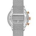 Швейцарские мужские часы-хронографХронографФункция позволяет измерять отрезки времени с особой точностью: часы, минуты, секунды. Верным признаком хронографа является наличие на циферблате 3 дополнительных окошек-счётчиков. Jacques Philippe Gallant JPQGC031246, кварцевый механизм с высокой точностью. Сапфировое стеклоСапфировое стеклоПрочный и надёжный материал из кристалла сапфира синтетического происхождения, характеризующийся особой твёрдостью и устойчивостью к царапинам и повреждениям. устойчивое к появлению царапин, обладающее высокой прозрачностью. Корпус часов изготовлен из нержавеющей стали. На циферблате три дополнительных индикатора. Стрелки с люминесцентным покрытиемЛюминесцентное покрытиеПозволяет считывать показания времени в темноте. Производители наносят на стрелки, часовые индексы, безель или поверхность циферблата светонакопительный состав, дающий холодное свечение.. Окошко даты находится между 4 и 5 часами. Класс водозащиты: 50 метров, позволит защитить корпус от случайных брызг или капель дождя. Стальной браслет миланского плетения на раскладном замкеРаскладной замокДанный вариант застежки используется только на часах с металлическим браслетом. Отличительная особенность такого крепления в том, что длина браслета становится универсальной и вы можете самостоятельно отрегулировать нужный вам размер – застежка просто двигается по браслету часов..