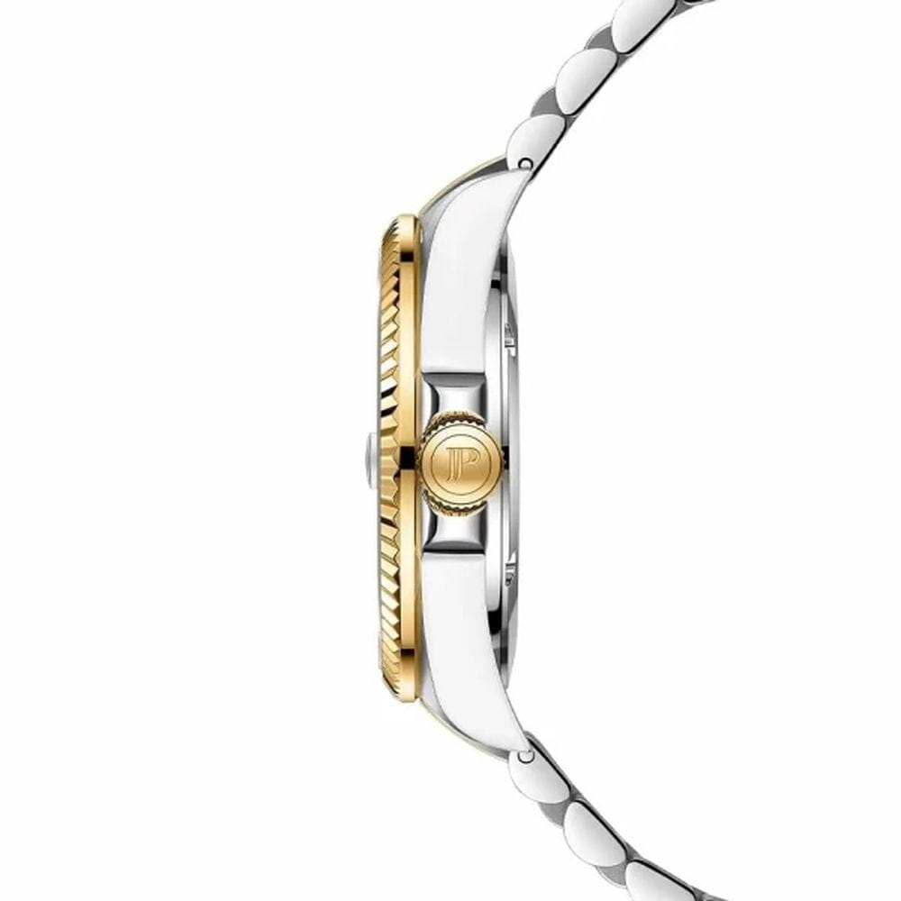 Jacques Philippe JPQGS597338V2 — мужские часы в сдержанном классическом исполнении с акцентом на простоту и надёжность. Корпус диаметром 40 мм выполнен из нержавеющей стали, а его умеренная толщина — около 12 мм — делает модель универсальной и комфортной в повседневной носке. БезельБезельВнешний ободок, закрепляющий стекло. В спортивных часах так называется поворотное кольцо с делениями на циферблате, выполняет роль таймера – замеряет отрезки времени на шкале. Неподвижный безель – элемент декора. Однонаправленно вращающийся безель на дайверских часах позволяет фиксировать моменты погружения и выныривания на поверхность. с PVD-покрытиемPVDУльтратонкое покрытие наносится в технике вакуумного напыления, сочетает в себе нитрид титана особой прочности со слоем золота или оксида хрома. Несёт в себе декоративную или защитную функцию.. Циферблат оформлен в светлом синем тоне с тонкими стрелками, лаконичными часовыми метками и аккуратным окошком даты в позиции «3 часа». Минималистичный стиль подчёркивает строгость и чистоту дизайна. Поверхность защищена устойчивым к царапинам сапфировым стекломСапфировое стеклоПрочный и надёжный материал из кристалла сапфира синтетического происхождения, характеризующийся особой твёрдостью и устойчивостью к царапинам и повреждениям., которое обеспечивает хорошую читаемость и долговечность. Механизм — точный швейцарский кварц, не требующий подзавода. Он обеспечивает стабильную и бесперебойную работу часов, сохраняя точность в любых условиях. Браслет из нержавеющей стали с PVD-покрытиемPVDУльтратонкое покрытие наносится в технике вакуумного напыления, сочетает в себе нитрид титана особой прочности со слоем золота или оксида хрома. Несёт в себе декоративную или защитную функцию. визуально продолжает корпус и фиксируется с помощью надёжной застёжки, обеспечивая комфортную посадку. Ширина браслета — 22 мм. Водозащита до 10 ATM позволяет использовать часы не только в повседневной жизни, но и при активности на воде. Jacques Philippe — это надёжная и универсальная модель для тех, кто ценит швейцарскую точность, простоту и уверенный стиль без лишних деталей.