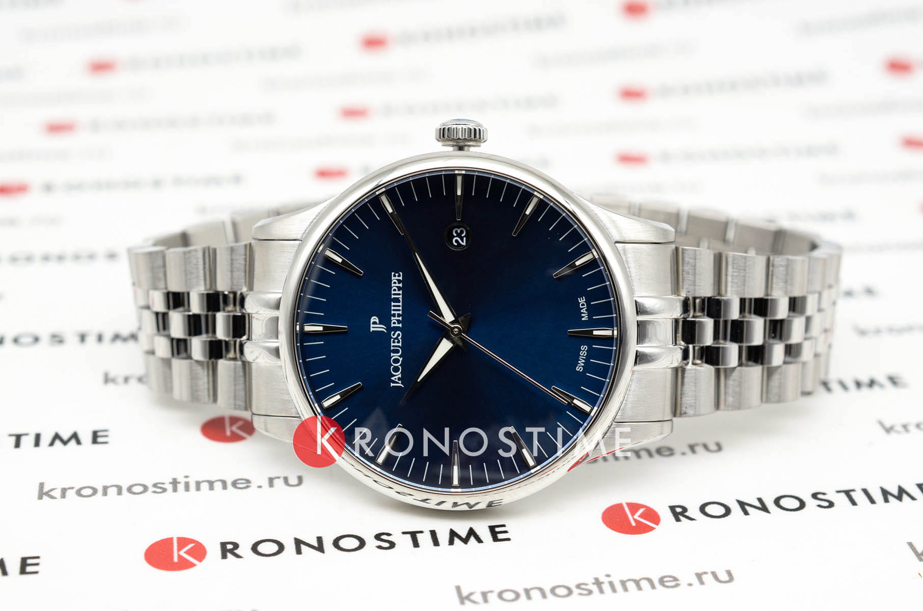 Jacques Philippe JPQGS661336 — стильные мужские часы в классическом формате с акцентом на надёжность и элегантность. Корпус круглой формы диаметром 40 мм из нержавеющей стали отличается утонченным силуэтом при толщине примерно 12 мм, обеспечивая комфорт при длительном ношении . Циферблат оформлен лаконично: тонкие стрелки и минималистичные часовые метки с люминесцентным покрытиемЛюминесцентное покрытиеПозволяет считывать показания времени в темноте. Производители наносят на стрелки, часовые индексы, безель или поверхность циферблата светонакопительный состав, дающий холодное свечение. подчёркивают строгий характер модели. Встроенная функция отображения даты придаёт часам практичность без лишнего визуального нагромождения. Поверхность защищает сапфировое стеклоСапфировое стеклоПрочный и надёжный материал из кристалла сапфира синтетического происхождения, характеризующийся особой твёрдостью и устойчивостью к царапинам и повреждениям. — устойчивое к царапинам и бликам. Внутри используется точный швейцарский кварцевый механизм, не требующий подзавода и сохраняющий стабильную работу без сложного обслуживания. Модель оснащена металлическим браслетом из нержавеющей стали в оттенке металлик‑серый на застёжке-бабочке с кнопкамиЗастёжка "бабочка"Такой вид застёжки дополняется предохранителями, помогающими избежать случайного раскрытия браслета. Обладают изящным исполнением. , ширина звеньев около 22 мм, что обеспечивает надёжную посадку и солидный внешний вид . Водозащита составляет до 5 ATM, — часы без проблем выдерживают случайный контакт с водой в повседневной эксплуатации . Jacques Philippe — гармоничное сочетание классического стиля, точного швейцарского кварца и практичности в одном надёжном аксессуаре.
