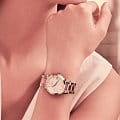 Водозащита 50 метров (5 ATM) защищает часы от брызг и дождя. Браслет из нержавеющей стали с PVD-покрытиемPVDУльтратонкое покрытие наносится в технике вакуумного напыления, сочетает в себе нитрид титана особой прочности со слоем золота или оксида хрома. Несёт в себе декоративную или защитную функцию. розового золота и застёжкой бабочкаЗастёжка "бабочка"Такой вид застёжки дополняется предохранителями, помогающими избежать случайного раскрытия браслета. Обладают изящным исполнением. обеспечивает комфортное ношение и надёжную фиксацию на запястье.
