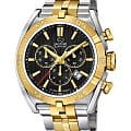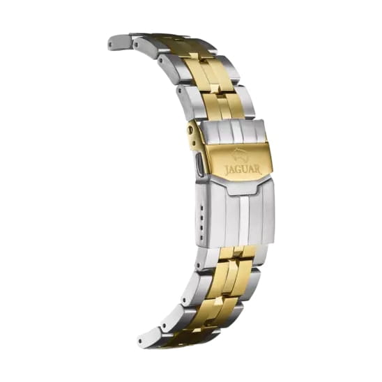Мужские швейцарские часы-хронографХронографФункция позволяет измерять отрезки времени с особой точностью: часы, минуты, секунды. Верным признаком хронографа является наличие на циферблате 3 дополнительных окошек-счётчиков. Jaguar Executive J855/C. Кварцевый швейцарский калибр Ronda 5030d. Сапфировое стеклоСапфировое стеклоПрочный и надёжный материал из кристалла сапфира синтетического происхождения, характеризующийся особой твёрдостью и устойчивостью к царапинам и повреждениям. устойчивое к мелким механическим повреждениям. Корпус и браслет часов изготовлены из нержавеющей стали. Стрелки и метки с люминесцентным покрытиемЛюминесцентное покрытиеПозволяет считывать показания времени в темноте. Производители наносят на стрелки, часовые индексы, безель или поверхность циферблата светонакопительный состав, дающий холодное свечение.. Окошко даты находится в положении между «4» и «5 часами». Класс водозащиты: 100 метров, позволит плавать, нырять и заниматься другими водными видами спорта. Стальной браслет с частичным PVD-покрытиемPVDУльтратонкое покрытие наносится в технике вакуумного напыления, сочетает в себе нитрид титана особой прочности со слоем золота или оксида хрома. Несёт в себе декоративную или защитную функцию. на раскладной застёжкеРаскладная застёжкаТакой тип застёжки используется только на браслетах из металла. Она никогда не раскрывается полностью, происходит разделение на 2 и более частей. Раскладывающая застёжка снизит вероятность потери часов к минимуму.. БезельБезельВнешний ободок, закрепляющий стекло. В спортивных часах так называется поворотное кольцо с делениями на циферблате, выполняет роль таймера – замеряет отрезки времени на шкале. Неподвижный безель – элемент декора. Однонаправленно вращающийся безель на дайверских часах позволяет фиксировать моменты погружения и выныривания на поверхность. с PVD-покрытиемPVDУльтратонкое покрытие наносится в технике вакуумного напыления, сочетает в себе нитрид титана особой прочности со слоем золота или оксида хрома. Несёт в себе декоративную или защитную функцию..