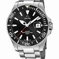 Мужские швейцарские часы Jaguar Executive Diver J860/D. Кварцевый швейцарский калибр Ronda 6003D. Сапфировое стеклоСапфировое стеклоПрочный и надёжный материал из кристалла сапфира синтетического происхождения, характеризующийся особой твёрдостью и устойчивостью к царапинам и повреждениям. устойчивое к мелким механическим повреждениям. Корпус и браслет часов изготовлены из нержавеющей стали. Стрелки и метки с люминесцентным покрытиемЛюминесцентное покрытиеПозволяет считывать показания времени в темноте. Производители наносят на стрелки, часовые индексы, безель или поверхность циферблата светонакопительный состав, дающий холодное свечение.. Окошко даты находится в положении 3 часа. Класс водозащиты: 200 метров, позволит плавать, нырять и заниматься другими водными видами спорта. Стальной браслет на раскладной застёжкеРаскладная застёжкаТакой тип застёжки используется только на браслетах из металла. Она никогда не раскрывается полностью, происходит разделение на 2 и более частей. Раскладывающая застёжка снизит вероятность потери часов к минимуму.. БезельБезельВнешний ободок, закрепляющий стекло. В спортивных часах так называется поворотное кольцо с делениями на циферблате, выполняет роль таймера – замеряет отрезки времени на шкале. Неподвижный безель – элемент декора. Однонаправленно вращающийся безель на дайверских часах позволяет фиксировать моменты погружения и выныривания на поверхность. с PVD-покрытиемPVDУльтратонкое покрытие наносится в технике вакуумного напыления, сочетает в себе нитрид титана особой прочности со слоем золота или оксида хрома. Несёт в себе декоративную или защитную функцию..