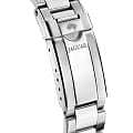 Jaguar J980/2 из коллекции Connected Lady — элегантные женские гибридные часы, сочетающие классический дизайн с современными технологиями. Корпус диаметром 37 мм выполнен из нержавеющей стали, что обеспечивает прочность и долговечность. Сапфировое стеклоСапфировое стеклоПрочный и надёжный материал из кристалла сапфира синтетического происхождения, характеризующийся особой твёрдостью и устойчивостью к царапинам и повреждениям. защищает циферблат от царапин и повреждений. Розовый циферблат с серебристыми индексами и стрелками подчёркивает изысканность дизайна. Часы оснащены функциями шагомера, уведомлений о звонках и сообщениях, управления музыкой и камерой смартфона, функции поиска телефона, а также автоматической синхронизации времени через Bluetooth. БезельБезельВнешний ободок, закрепляющий стекло. В спортивных часах так называется поворотное кольцо с делениями на циферблате, выполняет роль таймера – замеряет отрезки времени на шкале. Неподвижный безель – элемент декора. Однонаправленно вращающийся безель на дайверских часах позволяет фиксировать моменты погружения и выныривания на поверхность. инкрустирован кристаллами. Браслет из нержавеющей стали гарантирует комфортное ношение. Раскладная застёжкаРаскладная застёжкаТакой тип застёжки используется только на браслетах из металла. Она никогда не раскрывается полностью, происходит разделение на 2 и более частей. Раскладывающая застёжка снизит вероятность потери часов к минимуму. обеспечивает надёжную фиксацию. Водозащита до 5 ATM (50 метров) делает часы подходящими для повседневного использования. Jaguar J980/2 — это идеальный выбор для женщин, ценящих сочетание элегантности, функциональности и современных технологий.