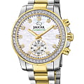Женские швейцарские часы Jaguar Connected Lady J982/1. Сапфировое стеклоСапфировое стеклоПрочный и надёжный материал из кристалла сапфира синтетического происхождения, характеризующийся особой твёрдостью и устойчивостью к царапинам и повреждениям. устойчивое к мелким механическим повреждениям. Корпус часов изготовлен из нержавеющей стали. Стрелки с люминесцентным покрытиемЛюминесцентное покрытиеПозволяет считывать показания времени в темноте. Производители наносят на стрелки, часовые индексы, безель или поверхность циферблата светонакопительный состав, дающий холодное свечение.. Класс водозащиты: 50 метров, позволит защитить корпус от случайных брызг или капель дождя. БезельБезельВнешний ободок, закрепляющий стекло. В спортивных часах так называется поворотное кольцо с делениями на циферблате, выполняет роль таймера – замеряет отрезки времени на шкале. Неподвижный безель – элемент декора. Однонаправленно вращающийся безель на дайверских часах позволяет фиксировать моменты погружения и выныривания на поверхность. с PVD-покрытиемPVDУльтратонкое покрытие наносится в технике вакуумного напыления, сочетает в себе нитрид титана особой прочности со слоем золота или оксида хрома. Несёт в себе декоративную или защитную функцию. и циферблат инкрустированы цирконием. Стальной браслет с частичным  PVD-покрытиемPVDУльтратонкое покрытие наносится в технике вакуумного напыления, сочетает в себе нитрид титана особой прочности со слоем золота или оксида хрома. Несёт в себе декоративную или защитную функцию. на раскладной застёжкеРаскладная застёжкаТакой тип застёжки используется только на браслетах из металла. Она никогда не раскрывается полностью, происходит разделение на 2 и более частей. Раскладывающая застёжка снизит вероятность потери часов к минимуму.. За точный ход работы часов, из коллекции Connected, отвечает кварцевый гибридный механизм швейцарского производства со Смарт-Модулем. Данный тип механизма обеспечивает возможность подключить часы к телефону через Bluetooth и управлять большим рядом дополнительных функций на выбор с помошью приложения Jaguar. Дополнительные функции: отображение даты и дня недели, секундомер, таймер, GMT, шагомер, поиск телефона, включение/выключение звука телефона при входящих вызовах, переключение музыки, вибро-уведомления.