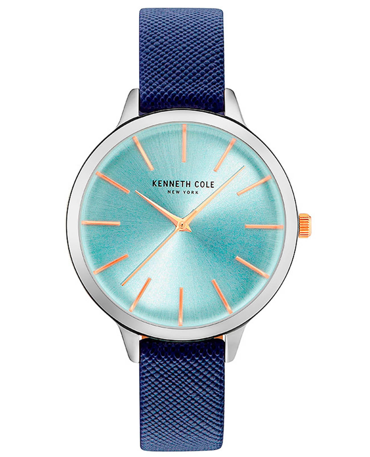 Женские кварцевые часы Kenneth Cole из коллекции Classic — это стильное сочетание классики и современного акцента. Корпус диаметром 38 мм выполнен из нержавеющей стали. Циферблат голубого цвета оформлен лаконичными метками-индексами, добавляя свежесть и элегантность образу. Циферблат защищён минеральным стекломМинеральное стеклоМинеральное стекло представляет собой искусственно выращенный минерал кварца. Такое стекло отличается особой устойчивостью к повреждениям и царапинам. Уступает по некоторым качествам сапфировому стеклу.. Часы оснащены кожаным ремешком синего цвета с классической пряжкой. Водонепроницаемость 30 м позволяет использовать часы в повседневных условиях, защищая от случайных брызг и капель дождя. Рифлёная заводная головка завершает дизайн. Сочетание аккуратного дизайна и выразительного цветового решения делает эти часы универсальным и запоминающимся аксессуаром.