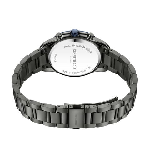 Мужские кварцевые часы-хронографХронографФункция позволяет измерять отрезки времени с особой точностью: часы, минуты, секунды. Верным признаком хронографа является наличие на циферблате 3 дополнительных окошек-счётчиков. с секундомеромСекундомерСекундоме́р — прибор, способный измерять интервалы времени с точностью до долей секунды. Kenneth Cole Dress Sport KCWGK2218903, кварцевый механизм с высокой точностью. Класс водозащиты: 30 метров, позволит защитить корпус от случайных брызг или капель дождя. Корпус и безельБезельВнешний ободок, закрепляющий стекло. В спортивных часах так называется поворотное кольцо с делениями на циферблате, выполняет роль таймера – замеряет отрезки времени на шкале. Неподвижный безель – элемент декора. Однонаправленно вращающийся безель на дайверских часах позволяет фиксировать моменты погружения и выныривания на поверхность. изготовлен из стали с IP-покрытиемIP-покрытиеМетод ионного напыления. Демонстрирует повышенную устойчивость к истиранию, окислению и химическим веществам. Под воздействием высокого давления и температуры около 1500°C молекулы металла надёжно соединяются с частицами корпуса часов.. Индикация даты и дня недели. Стрелки и метки с люминесцентным покрытиемЛюминесцентное покрытиеПозволяет считывать показания времени в темноте. Производители наносят на стрелки, часовые индексы, безель или поверхность циферблата светонакопительный состав, дающий холодное свечение.. Браслет из стали с IP-покрытиемIP-покрытиеМетод ионного напыления. Демонстрирует повышенную устойчивость к истиранию, окислению и химическим веществам. Под воздействием высокого давления и температуры около 1500°C молекулы металла надёжно соединяются с частицами корпуса часов. и с раскладной застёжкойРаскладная застёжкаТакой тип застёжки используется только на браслетах из металла. Она никогда не раскрывается полностью, происходит разделение на 2 и более частей. Раскладывающая застёжка снизит вероятность потери часов к минимуму..
