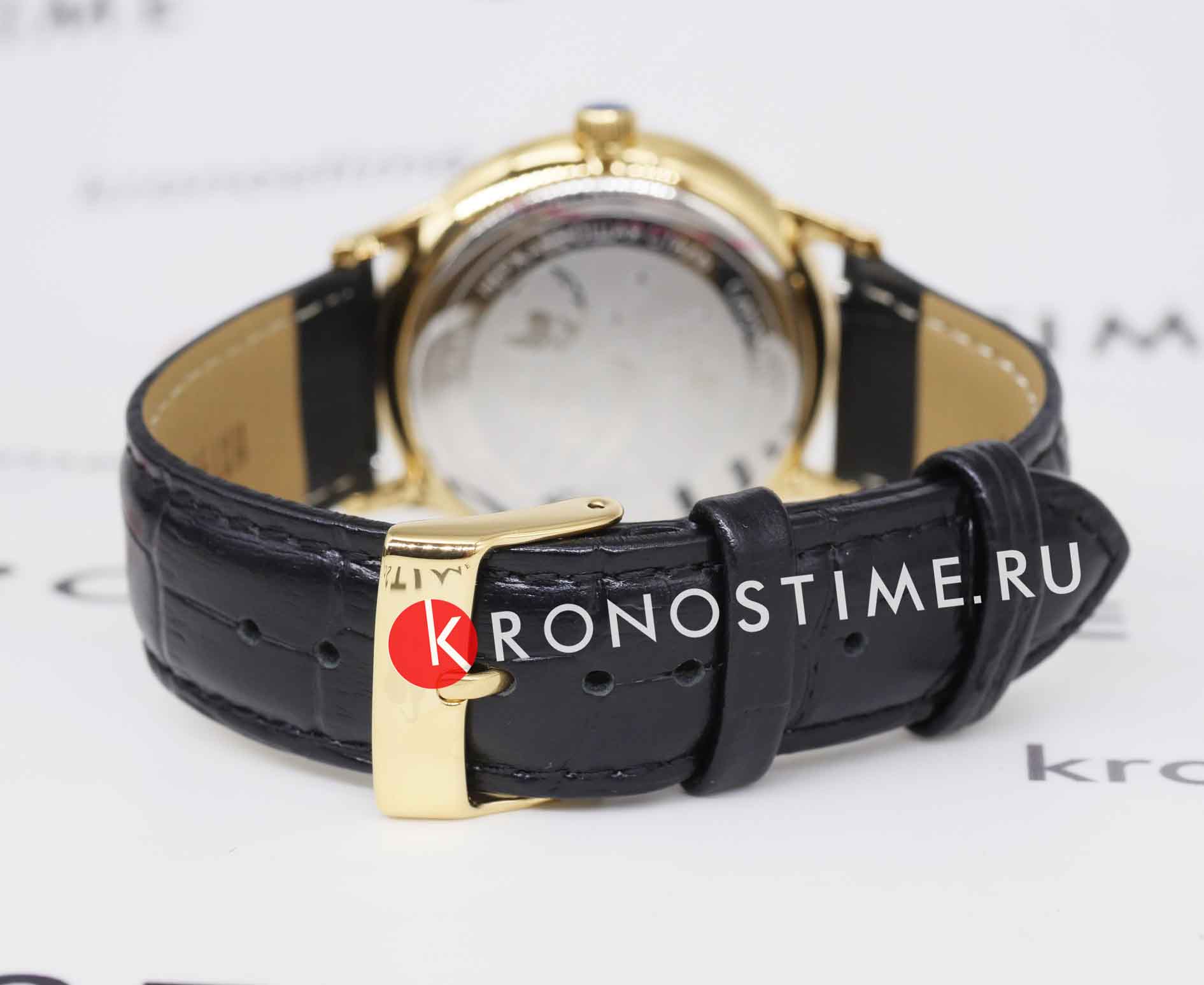 Мужские наручные часы Космос Сириус K 021.21.33 — это сочетание традиций часового искусства 60-70-х годов и футуристического дизайна, вдохновленного космическими исследованиями. Они не только служат напоминанием о прошлом, но и побуждают задуматься о будущем, позволяя наслаждаться качеством и смыслом, вложенными в каждую деталь. Полированный корпус часов выполнен в виде силуэта летающей тарелки благодаря выпуклым формам стекла и нижней части корпуса. Стальные ушки, которые напоминают опоры летающей тарелки, завершает общий образ. На задней крышке часов выгравирован фантазийный сюжет – космическая станция будущего. Серый циферблат в ретро-стиле с выгнутыми краями требует сложной технологии производства, что делает их аналогами часов прошлых эпох. Кончик секундной стрелки изогнут так, чтобы гармонировать с формой циферблата. Выпуклый градиентный циферблат украшен шлифовкой, напоминающей солнечные лучи, и ручными индексами, надежно закрепленными на двух штифтах. Специальное люминесцентное покрытиеЛюминесцентное покрытиеПозволяет считывать показания времени в темноте. Производители наносят на стрелки, часовые индексы, безель или поверхность циферблата светонакопительный состав, дающий холодное свечение. нанесено на часовую, минутную и секундную стрелки, а также на пунктирные метки и окантовку циферблата, создавая эффект светящегося изображения в темноте. Форма минерального стеклаМинеральное стеклоМинеральное стекло представляет собой искусственно выращенный минерал кварца. Такое стекло отличается особой устойчивостью к повреждениям и царапинам. Уступает по некоторым качествам сапфировому стеклу. также тщательно продумана — оно изогнуто как снаружи, так и изнутри. Эта конструкция предотвращает искажение изображения на циферблате, в отличие от традиционных стекол с прямой внутренней частью, которые могут создавать оптические искажения. Часы комплектуются кожаным браслетом черного цвета с прошивкой. Корпус изготовлен из гипоаллергенной стали с IP-покрытиемIP-покрытиеМетод ионного напыления. Демонстрирует повышенную устойчивость к истиранию, окислению и химическим веществам. Под воздействием высокого давления и температуры около 1500°C молекулы металла надёжно соединяются с частицами корпуса часов., что обеспечивает комфорт при ношении. Заводная головка, застежка и ремешок украшены фирменным логотипом, подчеркивающим индивидуальность данной модели.