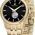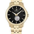 Мужские наручные часы Космос Телескоп K 304.20.31 —  это уникальная лимитированная серия под названием Телескоп, посвящена аппарату приоткрывающего взгляду бескрайние дали космического пространства. Апертура открытого баланса модели по форме напоминает круглую линзу телескопа. Сквозь это окошко, расположенное на черном циферблате, также можно увидеть много интересного: ту самую систему «баланс-спираль» автоматического механизма, которая отвечает за точность хода. Корпус часов выполнен из нержавеющей стали с PVDPVDУльтратонкое покрытие наносится в технике вакуумного напыления, сочетает в себе нитрид титана особой прочности со слоем золота или оксида хрома. Несёт в себе декоративную или защитную функцию. покрытием, классической круглой формы и достаточно тонкий для механических моделей. Это стало возможным благодаря использованию механизма Miyota, калибр 9029, с высотой всего 3.9 мм. Циферблат декорирован вертикальной текстурой в ретро-стиле, по которой движутся крупные часовая и минутная стрелки, имеющие люминесцентное покрытиеЛюминесцентное покрытиеПозволяет считывать показания времени в темноте. Производители наносят на стрелки, часовые индексы, безель или поверхность циферблата светонакопительный состав, дающий холодное свечение., позволяющее определять время даже в темноте. Циферблат защищен прочным сапфировым стеклом с антибликовым покрытиемСапфировое стеклоПрочный и надёжный материал из кристалла сапфира синтетического происхождения, характеризующийся особой твёрдостью и устойчивостью к царапинам и повреждениям., обеспечивающим отличную читаемость показаний в любых условиях. Прозрачная задняя крышка, закрепленная на четырех винтах, демонстрирует механизм и содержит выгравированный индивидуальный номер экземпляра  хх/50, отражающий лимитированный тираж всего в 50 штук. Браслет изготовлен из нержавеющей стали с PVDPVDУльтратонкое покрытие наносится в технике вакуумного напыления, сочетает в себе нитрид титана особой прочности со слоем золота или оксида хрома. Несёт в себе декоративную или защитную функцию. покрытием и оснащен удобной застёжкой «бабочка» с кнопкамиЗастёжка "бабочка"Такой вид застёжки дополняется предохранителями, помогающими избежать случайного раскрытия браслета. Обладают изящным исполнением. , которая сводит к минимуму вероятность потери. Модель Телескоп сочетает классический дизайн и универсальность, прекрасно подходя как к деловому костюму, так и к более повседневным образам.