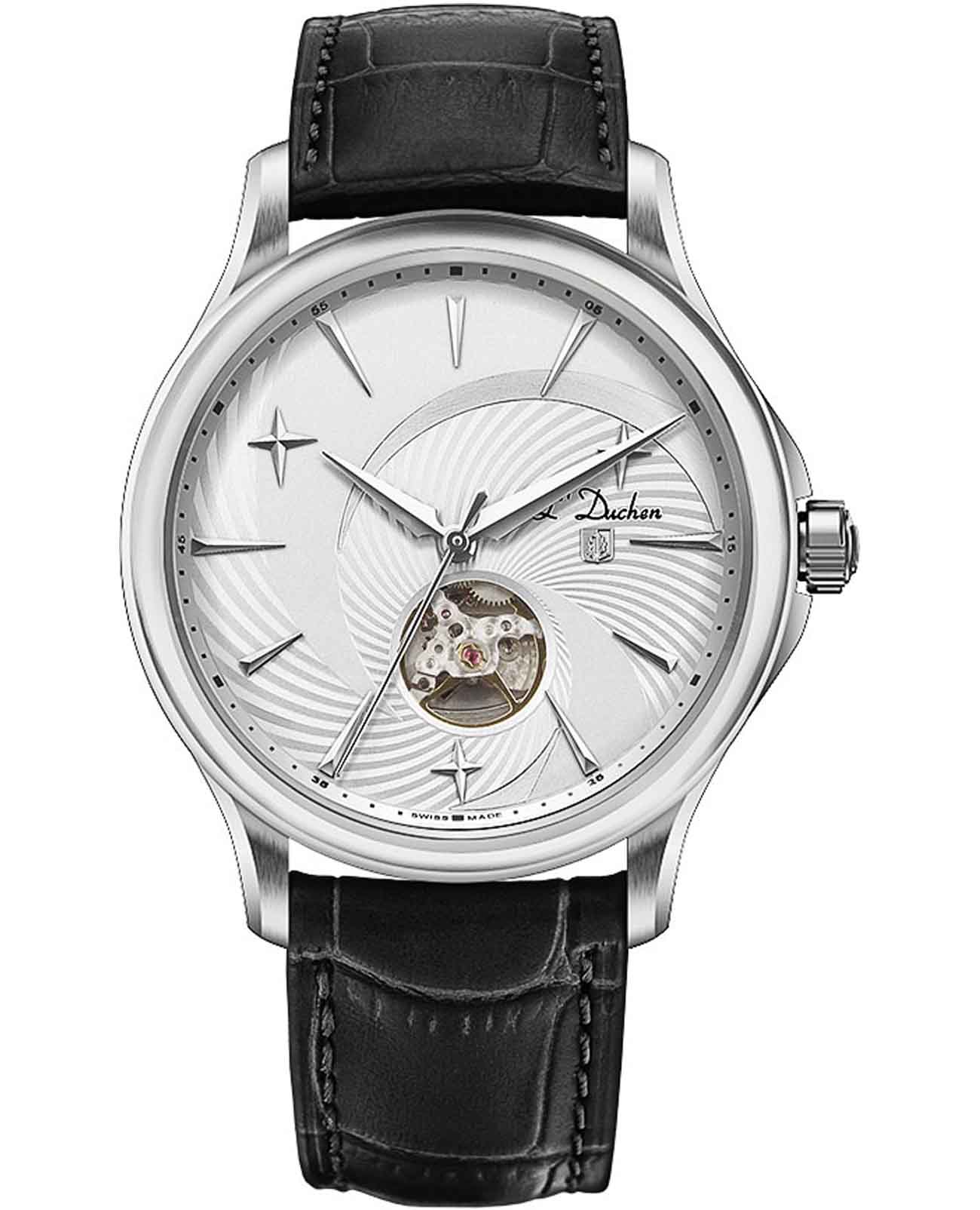 Мужские механические швейцарские часы с автоподзаводом LDuchen Supernova D 154.11.33, кварцевый механизм с высокой точностью. Сапфировое стеклоСапфировое стеклоПрочный и надёжный материал из кристалла сапфира синтетического происхождения, характеризующийся особой твёрдостью и устойчивостью к царапинам и повреждениям. устойчивое к появлению царапин, обладающее высокой прозрачностью. Корпус часов выполнен из нержавеющей стали. Класс водозащиты: 50 метров, позволит защитить корпус от случайных брызг или капель дождя. Кожаный ремешок на раскладной застёжкеРаскладная застёжкаТакой тип застёжки используется только на браслетах из металла. Она никогда не раскрывается полностью, происходит разделение на 2 и более частей. Раскладывающая застёжка снизит вероятность потери часов к минимуму..