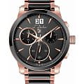 Мужские швейцарские часы-хронографХронографФункция позволяет измерять отрезки времени с особой точностью: часы, минуты, секунды. Верным признаком хронографа является наличие на циферблате 3 дополнительных окошек-счётчиков. L'Duchen Aerostat Chrono D 232.40.31,кварцевый механизм с высокой точностью. Сапфировое стеклоСапфировое стеклоПрочный и надёжный материал из кристалла сапфира синтетического происхождения, характеризующийся особой твёрдостью и устойчивостью к царапинам и повреждениям. устойчивое к появлению царапин, обладающее высокой прозрачностью. Корпус часов выполнен из нержавеющей стали с PVD-покрытиемPVDУльтратонкое покрытие наносится в технике вакуумного напыления, сочетает в себе нитрид титана особой прочности со слоем золота или оксида хрома. Несёт в себе декоративную или защитную функцию.. БезельБезельВнешний ободок, закрепляющий стекло. В спортивных часах так называется поворотное кольцо с делениями на циферблате, выполняет роль таймера – замеряет отрезки времени на шкале. Неподвижный безель – элемент декора. Однонаправленно вращающийся безель на дайверских часах позволяет фиксировать моменты погружения и выныривания на поверхность. из керамики. Стрелки с люминесцентным покрытиемЛюминесцентное покрытиеПозволяет считывать показания времени в темноте. Производители наносят на стрелки, часовые индексы, безель или поверхность циферблата светонакопительный состав, дающий холодное свечение.. Класс водозащиты: 100 метров, позволит плавать, нырять и заниматься другими водными видами спорта. Стальной браслет с PVD-покрытиемPVDУльтратонкое покрытие наносится в технике вакуумного напыления, сочетает в себе нитрид титана особой прочности со слоем золота или оксида хрома. Несёт в себе декоративную или защитную функцию. и керамическими вставками на застёжке «бабочка» с кнопкамиЗастёжка "бабочка"Такой вид застёжки дополняется предохранителями, помогающими избежать случайного раскрытия браслета. Обладают изящным исполнением. .