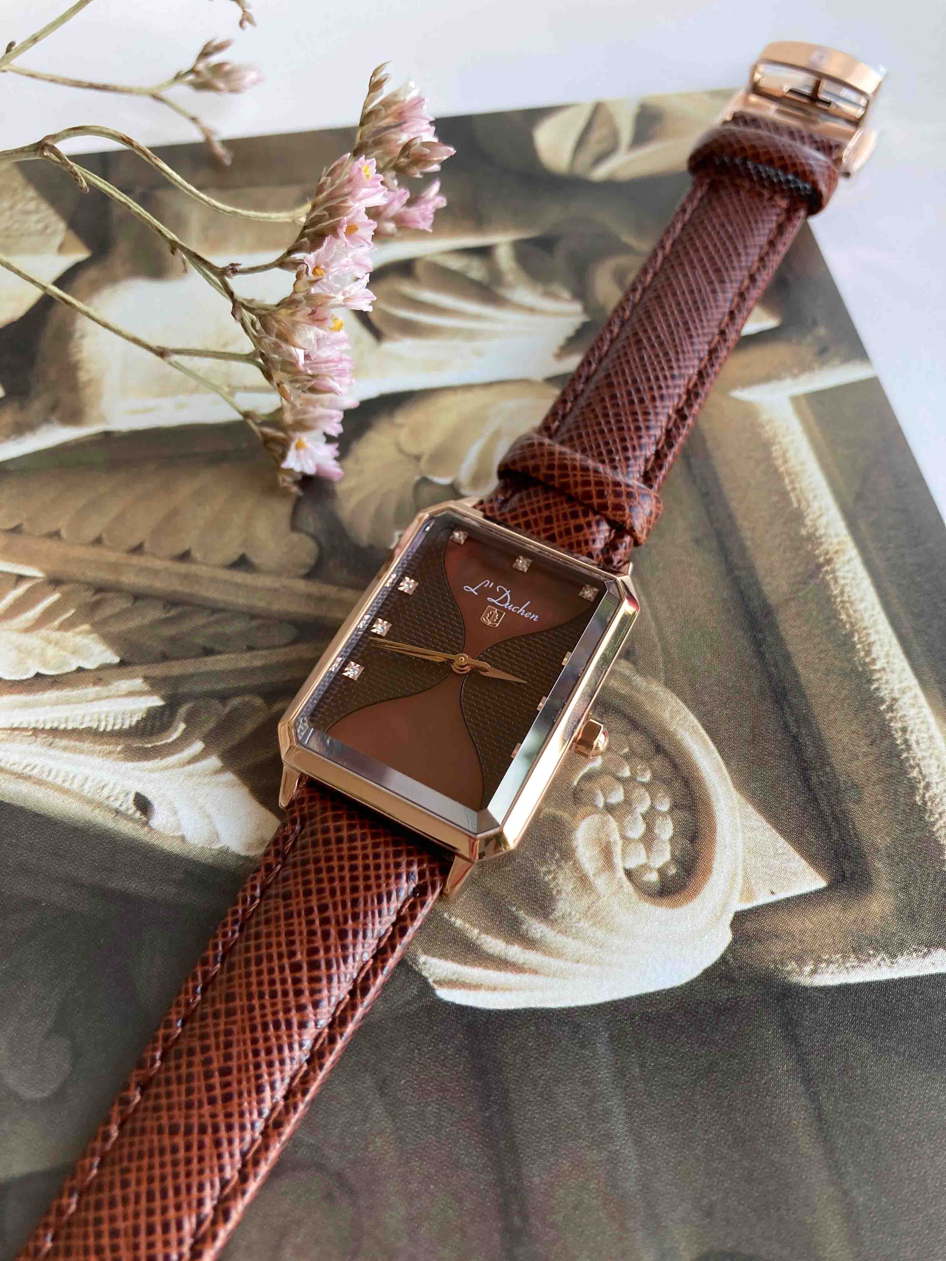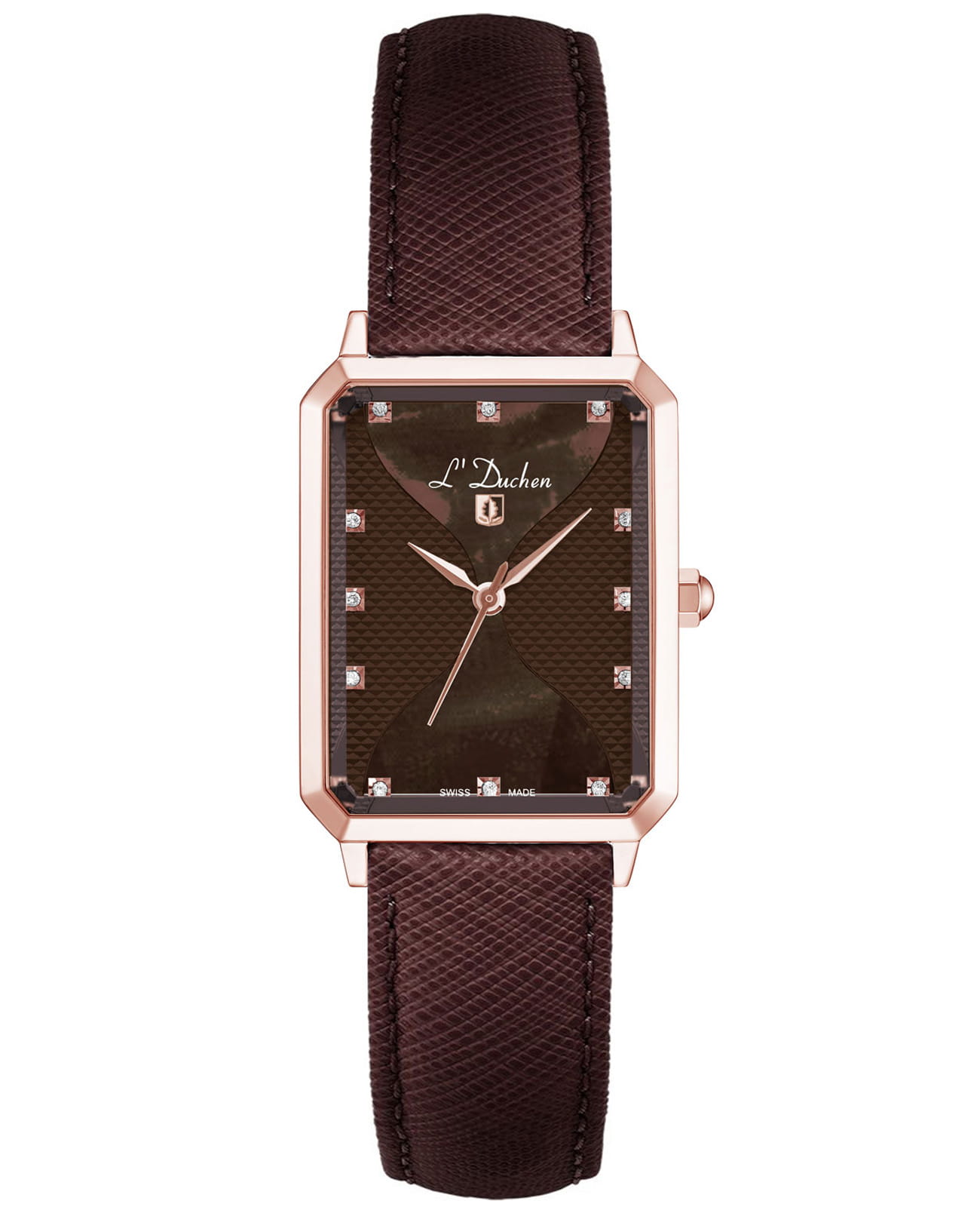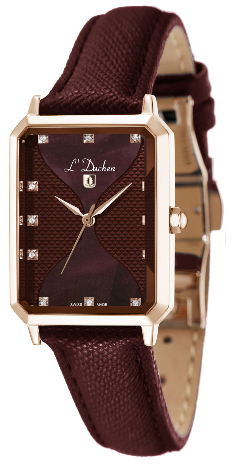 Женские швейцарские L'Duchen Pyramide D 591.42.38, кварцевый механизм с высокой точностью. Сапфировое стеклоСапфировое стеклоПрочный и надёжный материал из кристалла сапфира синтетического происхождения, характеризующийся особой твёрдостью и устойчивостью к царапинам и повреждениям. устойчивое к появлению царапин, обладающее высокой прозрачностью. Корпус часов выполнен из нержавеющей стали с PVD-покрытиемPVDУльтратонкое покрытие наносится в технике вакуумного напыления, сочетает в себе нитрид титана особой прочности со слоем золота или оксида хрома. Несёт в себе декоративную или защитную функцию.. Циферблат украшен фианитами. Класс водозащиты: 50 метров, позволит защитить корпус от случайных брызг или капель дождя. Кожаный ремешок.