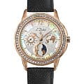 Женские швейцарские механические часы с автоподзаводом L'Duchen Celeste D 737.41.33. Сапфировое стеклоСапфировое стеклоПрочный и надёжный материал из кристалла сапфира синтетического происхождения, характеризующийся особой твёрдостью и устойчивостью к царапинам и повреждениям. устойчивое к появлению царапин, обладающее высокой прозрачностью. Корпус часов выполнен из нержавеющей стали с PVD-покрытиемPVDУльтратонкое покрытие наносится в технике вакуумного напыления, сочетает в себе нитрид титана особой прочности со слоем золота или оксида хрома. Несёт в себе декоративную или защитную функцию.. БезельБезельВнешний ободок, закрепляющий стекло. В спортивных часах так называется поворотное кольцо с делениями на циферблате, выполняет роль таймера – замеряет отрезки времени на шкале. Неподвижный безель – элемент декора. Однонаправленно вращающийся безель на дайверских часах позволяет фиксировать моменты погружения и выныривания на поверхность. украшен фианитами. Класс водозащиты: 50 метров, позволит защитить корпус от случайных брызг или капель дождя. Кожаный ремешок на застёжке «бабочка» с кнопкамиЗастёжка "бабочка"Такой вид застёжки дополняется предохранителями, помогающими избежать случайного раскрытия браслета. Обладают изящным исполнением. .