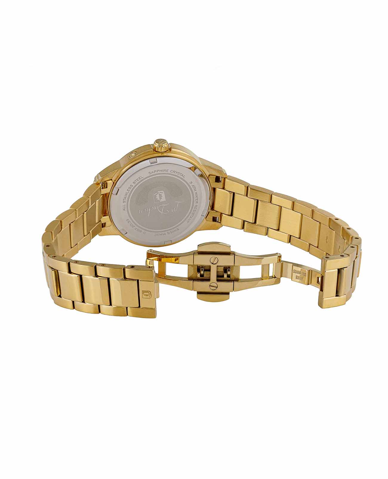 Женские швейцарские кварцевые часы L'Duchen Celeste D 857.20.33. Сапфировое стеклоСапфировое стеклоПрочный и надёжный материал из кристалла сапфира синтетического происхождения, характеризующийся особой твёрдостью и устойчивостью к царапинам и повреждениям. устойчивое к появлению царапин, обладающее высокой прозрачностью. Корпус часов выполнен из нержавеющей стали с PVD-покрытиемPVDУльтратонкое покрытие наносится в технике вакуумного напыления, сочетает в себе нитрид титана особой прочности со слоем золота или оксида хрома. Несёт в себе декоративную или защитную функцию.. Число и день недели вынесены на отдельные циферблаты. Указатель фаз Луны находится в положении 6 часов. Класс водозащиты: 50 метров, позволит защитить корпус от случайных брызг или капель дождя. Стальной браслет с PVD-покрытиемPVDУльтратонкое покрытие наносится в технике вакуумного напыления, сочетает в себе нитрид титана особой прочности со слоем золота или оксида хрома. Несёт в себе декоративную или защитную функцию. на застёжке-бабочке с кнопкамиЗастёжка "бабочка"Такой вид застёжки дополняется предохранителями, помогающими избежать случайного раскрытия браслета. Обладают изящным исполнением. .