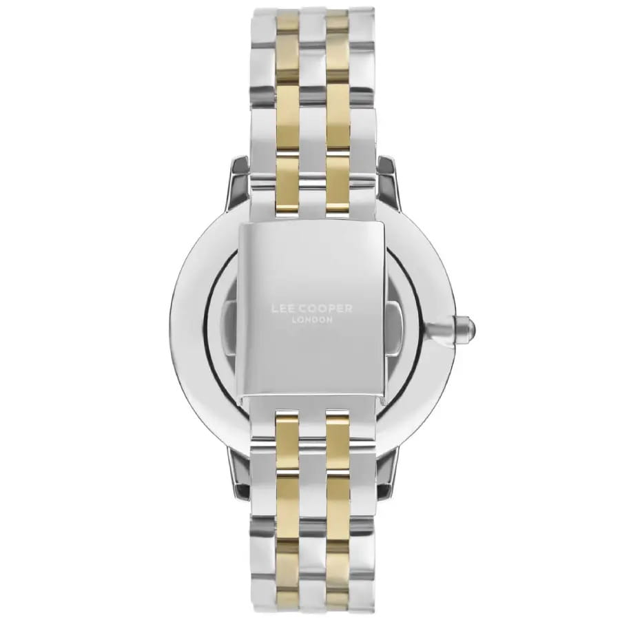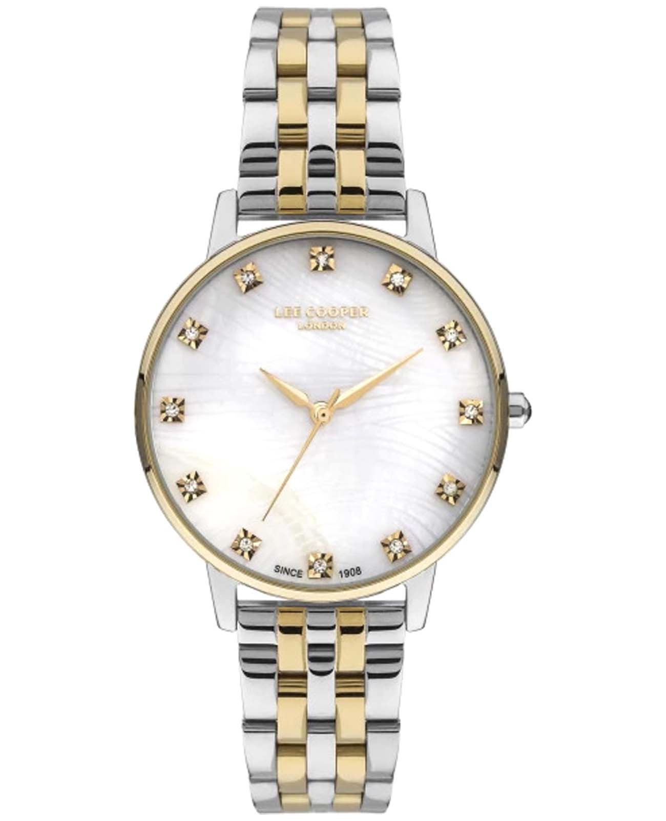 Женские наручные часы Lee Cooper LC07402.220 — это элегантная модель с утончённым дизайном. Корпус диаметром 36 мм выполнен из нержавеющей стали, что придаёт часам изысканный вид. Узорчатый серебристый циферблат украшен изящными вставками из кристаллов и стрелками, обеспечивая удобное считывание времени. Циферблат защищён минеральным стекломМинеральное стеклоМинеральное стекло представляет собой искусственно выращенный минерал кварца. Такое стекло отличается особой устойчивостью к повреждениям и царапинам. Уступает по некоторым качествам сапфировому стеклу., устойчивым к царапинам. Часы работают на кварцевом механизме, обеспечивая точность хода. Браслет из нержавеющей стали с раскладной застёжкойРаскладная застёжкаТакой тип застёжки используется только на браслетах из металла. Она никогда не раскрывается полностью, происходит разделение на 2 и более частей. Раскладывающая застёжка снизит вероятность потери часов к минимуму. гарантирует комфортное ношение и надёжную фиксацию на запястье. БезельБезельВнешний ободок, закрепляющий стекло. В спортивных часах так называется поворотное кольцо с делениями на циферблате, выполняет роль таймера – замеряет отрезки времени на шкале. Неподвижный безель – элемент декора. Однонаправленно вращающийся безель на дайверских часах позволяет фиксировать моменты погружения и выныривания на поверхность. с IP-покрытиемIP-покрытиеМетод ионного напыления. Демонстрирует повышенную устойчивость к истиранию, окислению и химическим веществам. Под воздействием высокого давления и температуры около 1500°C молекулы металла надёжно соединяются с частицами корпуса часов.. Водозащита 30 метров защищает часы от случайных брызг и дождя, делая их подходящими для повседневного использования.
