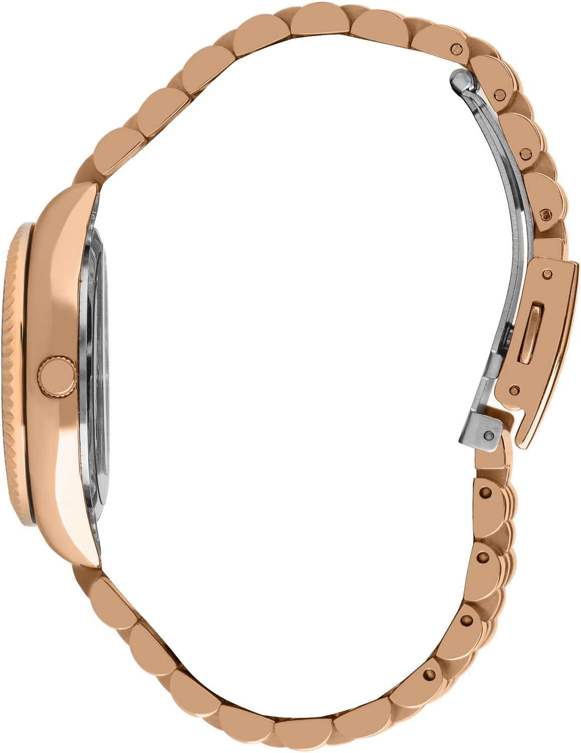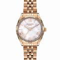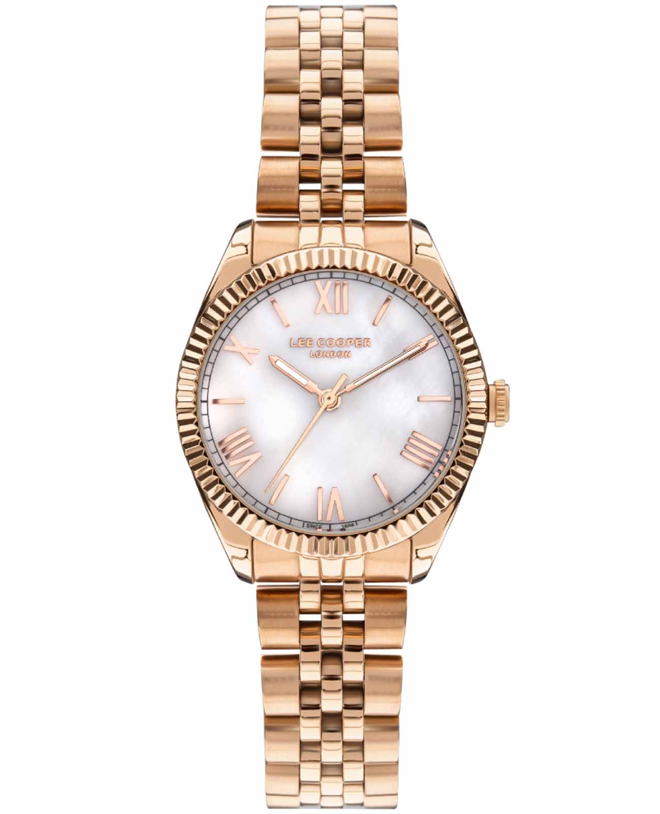 Женские наручные часы Lee Cooper LC07448.420 — это элегантная модель с утончённым дизайном. Корпус диаметром 35 мм выполнен из суперметалла с IP-покрытиемIP-покрытиеМетод ионного напыления. Демонстрирует повышенную устойчивость к истиранию, окислению и химическим веществам. Под воздействием высокого давления и температуры около 1500°C молекулы металла надёжно соединяются с частицами корпуса часов., что придаёт часам изысканный вид. Перламутровый циферблат украшен изящными римскими цифрами и стрелками обеспечивая удобное считывание времени. Циферблат защищён минеральным стекломМинеральное стеклоМинеральное стекло представляет собой искусственно выращенный минерал кварца. Такое стекло отличается особой устойчивостью к повреждениям и царапинам. Уступает по некоторым качествам сапфировому стеклу., устойчивым к царапинам. Часы работают на кварцевом механизме, обеспечивая точность хода. Браслет из нержавеющей стали с раскладной застёжкойРаскладная застёжкаТакой тип застёжки используется только на браслетах из металла. Она никогда не раскрывается полностью, происходит разделение на 2 и более частей. Раскладывающая застёжка снизит вероятность потери часов к минимуму. гарантирует комфортное ношение и надёжную фиксацию на запястье. Водозащита 30 метров защищает часы от случайных брызг и дождя, делая их подходящими для повседневного использования. Стрелки покрыты люминесцентным покрытиемЛюминесцентное покрытиеПозволяет считывать показания времени в темноте. Производители наносят на стрелки, часовые индексы, безель или поверхность циферблата светонакопительный состав, дающий холодное свечение., обеспечивая удобное считывание показаний в условиях недостаточного освещения.