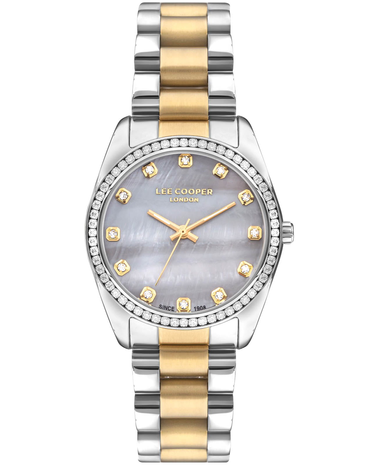Женские часы Lee Cooper LC07478.260 — это стильное сочетание элегантности и современного дизайна. Круглый корпус диаметром 34 мм выполнен из суперметалла в серебристом цвете, а неподвижный безельБезельВнешний ободок, закрепляющий стекло. В спортивных часах так называется поворотное кольцо с делениями на циферблате, выполняет роль таймера – замеряет отрезки времени на шкале. Неподвижный безель – элемент декора. Однонаправленно вращающийся безель на дайверских часах позволяет фиксировать моменты погружения и выныривания на поверхность. украшен цирконами, придающими модели особый блеск. Серый циферблат защищен минеральным стекломМинеральное стеклоМинеральное стекло представляет собой искусственно выращенный минерал кварца. Такое стекло отличается особой устойчивостью к повреждениям и царапинам. Уступает по некоторым качествам сапфировому стеклу., обеспечивающим устойчивость к царапинам. Метки инкрустированы цирконами. Часы оснащены надежным кварцевым механизмом, а металлический браслет с частичным IP-покрытиемIP-покрытиеМетод ионного напыления. Демонстрирует повышенную устойчивость к истиранию, окислению и химическим веществам. Под воздействием высокого давления и температуры около 1500°C молекулы металла надёжно соединяются с частицами корпуса часов. на раскладной застёжкеРаскладная застёжкаТакой тип застёжки используется только на браслетах из металла. Она никогда не раскрывается полностью, происходит разделение на 2 и более частей. Раскладывающая застёжка снизит вероятность потери часов к минимуму. гарантирует комфортную посадку на запястье. Стрелки с люминесцентным покрытиемЛюминесцентное покрытиеПозволяет считывать показания времени в темноте. Производители наносят на стрелки, часовые индексы, безель или поверхность циферблата светонакопительный состав, дающий холодное свечение. позволяют легко считывать время даже в условиях недостаточного освещения. Водозащита 30 метров защищает модель от случайных брызг и дождя. Lee Cooper — отличный выбор для тех, кто ценит утонченность и качество.