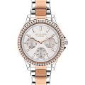Женские часы Lee Cooper LC07512.530 — это стильное сочетание элегантности и современного дизайна. Круглый корпус диаметром 36 мм выполнен из суперметалла, а неподвижный безельБезельВнешний ободок, закрепляющий стекло. В спортивных часах так называется поворотное кольцо с делениями на циферблате, выполняет роль таймера – замеряет отрезки времени на шкале. Неподвижный безель – элемент декора. Однонаправленно вращающийся безель на дайверских часах позволяет фиксировать моменты погружения и выныривания на поверхность. с IP-покрытиемIP-покрытиеМетод ионного напыления. Демонстрирует повышенную устойчивость к истиранию, окислению и химическим веществам. Под воздействием высокого давления и температуры около 1500°C молекулы металла надёжно соединяются с частицами корпуса часов. цвета розового золота украшен цирконами, придающими модели особый блеск. Серебристый циферблат защищен минеральным стекломМинеральное стеклоМинеральное стекло представляет собой искусственно выращенный минерал кварца. Такое стекло отличается особой устойчивостью к повреждениям и царапинам. Уступает по некоторым качествам сапфировому стеклу., обеспечивающим устойчивость к царапинам. Метки в виде штрихов. Часы оснащены надежным кварцевым механизмом, а металлический браслет с частичным IP-покрытиемIP-покрытиеМетод ионного напыления. Демонстрирует повышенную устойчивость к истиранию, окислению и химическим веществам. Под воздействием высокого давления и температуры около 1500°C молекулы металла надёжно соединяются с частицами корпуса часов. на раскладной застёжкеРаскладная застёжкаТакой тип застёжки используется только на браслетах из металла. Она никогда не раскрывается полностью, происходит разделение на 2 и более частей. Раскладывающая застёжка снизит вероятность потери часов к минимуму. гарантирует комфортную посадку на запястье. Мультифункциональная модель с индикацией даты, дня недели, с дополнительным 24-х часовым индикатором. Стрелки и метки с люминесцентным покрытиемЛюминесцентное покрытиеПозволяет считывать показания времени в темноте. Производители наносят на стрелки, часовые индексы, безель или поверхность циферблата светонакопительный состав, дающий холодное свечение. позволяют легко считывать время даже в условиях недостаточного освещения. Водозащита 30 метров защищает модель от случайных брызг и дождя. Lee Cooper — отличный выбор для тех, кто ценит утонченность и качество.