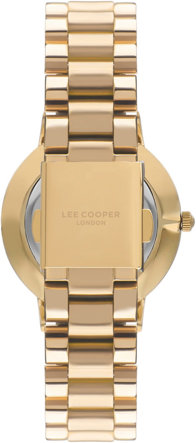 Женские часы Lee Cooper LC07548.130 — это стильное сочетание элегантности и современного дизайна. Круглый корпус диаметром 36 мм выполнен из суперметалла с IP-покрытиемIP-покрытиеМетод ионного напыления. Демонстрирует повышенную устойчивость к истиранию, окислению и химическим веществам. Под воздействием высокого давления и температуры около 1500°C молекулы металла надёжно соединяются с частицами корпуса часов. золотого цвета, что придает модели особый блеск. Серебристый циферблат защищен минеральным стекломМинеральное стеклоМинеральное стекло представляет собой искусственно выращенный минерал кварца. Такое стекло отличается особой устойчивостью к повреждениям и царапинам. Уступает по некоторым качествам сапфировому стеклу., обеспечивающим устойчивость к царапинам и украшен цирконами в виде меток. Часы оснащены надежным кварцевым механизмом, а металлический браслет с IP-покрытиемIP-покрытиеМетод ионного напыления. Демонстрирует повышенную устойчивость к истиранию, окислению и химическим веществам. Под воздействием высокого давления и температуры около 1500°C молекулы металла надёжно соединяются с частицами корпуса часов. на раскладной застёжкеРаскладная застёжкаТакой тип застёжки используется только на браслетах из металла. Она никогда не раскрывается полностью, происходит разделение на 2 и более частей. Раскладывающая застёжка снизит вероятность потери часов к минимуму. гарантирует комфортную посадку на запястье. Водозащита 30 метров защищает модель от случайных брызг и дождя. Lee Cooper — отличный выбор для тех, кто ценит утонченность и качество.