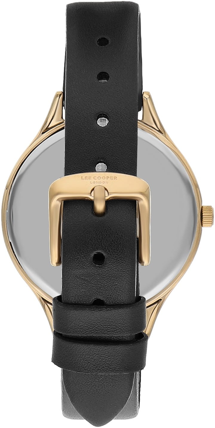Женские часы Lee Cooper LC07567.177 — идеальное сочетание классического дизайна и современных технологий. Эти часы станут вашим верным спутником, подчеркивая вашу индивидуальность и безупречный вкус. Круглый корпус диаметром 36 мм выполнен из суперметалла с IP-покрытиемIP-покрытиеМетод ионного напыления. Демонстрирует повышенную устойчивость к истиранию, окислению и химическим веществам. Под воздействием высокого давления и температуры около 1500°C молекулы металла надёжно соединяются с частицами корпуса часов. золотого цвета, что придает модели особый блеск. Циферблат с минималистичными метками и стрелками придает часам элегантность и утонченность, делая их идеальным аксессуаром для любой женщины, а минеральное стеклоМинеральное стеклоМинеральное стекло представляет собой искусственно выращенный минерал кварца. Такое стекло отличается особой устойчивостью к повреждениям и царапинам. Уступает по некоторым качествам сапфировому стеклу., обеспечивает устойчивость к царапинам. Часы оснащены надежным кварцевым механизмом. Кожаный ремешок на стандартной застёжке гарантирует комфортную посадку на запястье. Водозащита 30 метров защищает модель от случайных брызг и дождя. Lee Cooper — отличный выбор для тех, кто ценит утонченность и качество.