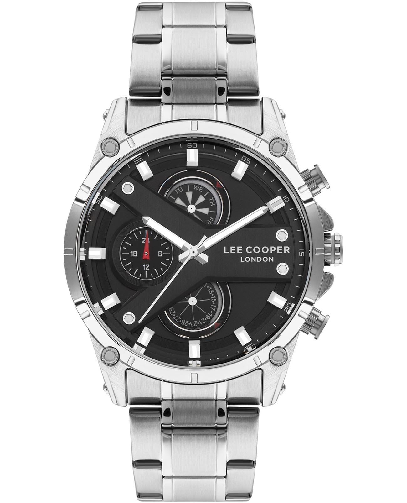 Мужские наручные часы Lee Cooper LC07637.350 оснащены кварцевым механизмом, обеспечивающий высокую точность хода и надежность. Элегантный корпус часов выполнен из суперметалла, что делает их устойчивыми к внешним воздействиям и придает благородный вид. Циферблат черного цвета украшен классическими стрелками и метками с люминесцентным покрытиемЛюминесцентное покрытиеПозволяет считывать показания времени в темноте. Производители наносят на стрелки, часовые индексы, безель или поверхность циферблата светонакопительный состав, дающий холодное свечение., гармонично дополняющим общий дизайн модели. Для защиты циферблата используется минеральное стеклоМинеральное стеклоМинеральное стекло представляет собой искусственно выращенный минерал кварца. Такое стекло отличается особой устойчивостью к повреждениям и царапинам. Уступает по некоторым качествам сапфировому стеклу., устойчивое к царапинам и механическим повреждениям. Корпус имеет круглую форму диаметром 46 мм, что делает часы заметными и подходящими. Браслет из стали оснащен раскладной застёжкойРаскладная застёжкаТакой тип застёжки используется только на браслетах из металла. Она никогда не раскрывается полностью, происходит разделение на 2 и более частей. Раскладывающая застёжка снизит вероятность потери часов к минимуму., обеспечивающим комфортное и безопасное ношение. Вынесенный циферблат с 24-х часовым указателем времени, индикацией даты и дня недели. Часы обладают водонепроницаемостью до 50 метров (5 АТМ), что позволяет использовать их в повседневной жизни, включая контакт с водой при мытье рук или дожде. Эти часы станут идеальным выбором для мужчин, ценящих стиль, качество и функциональность.
