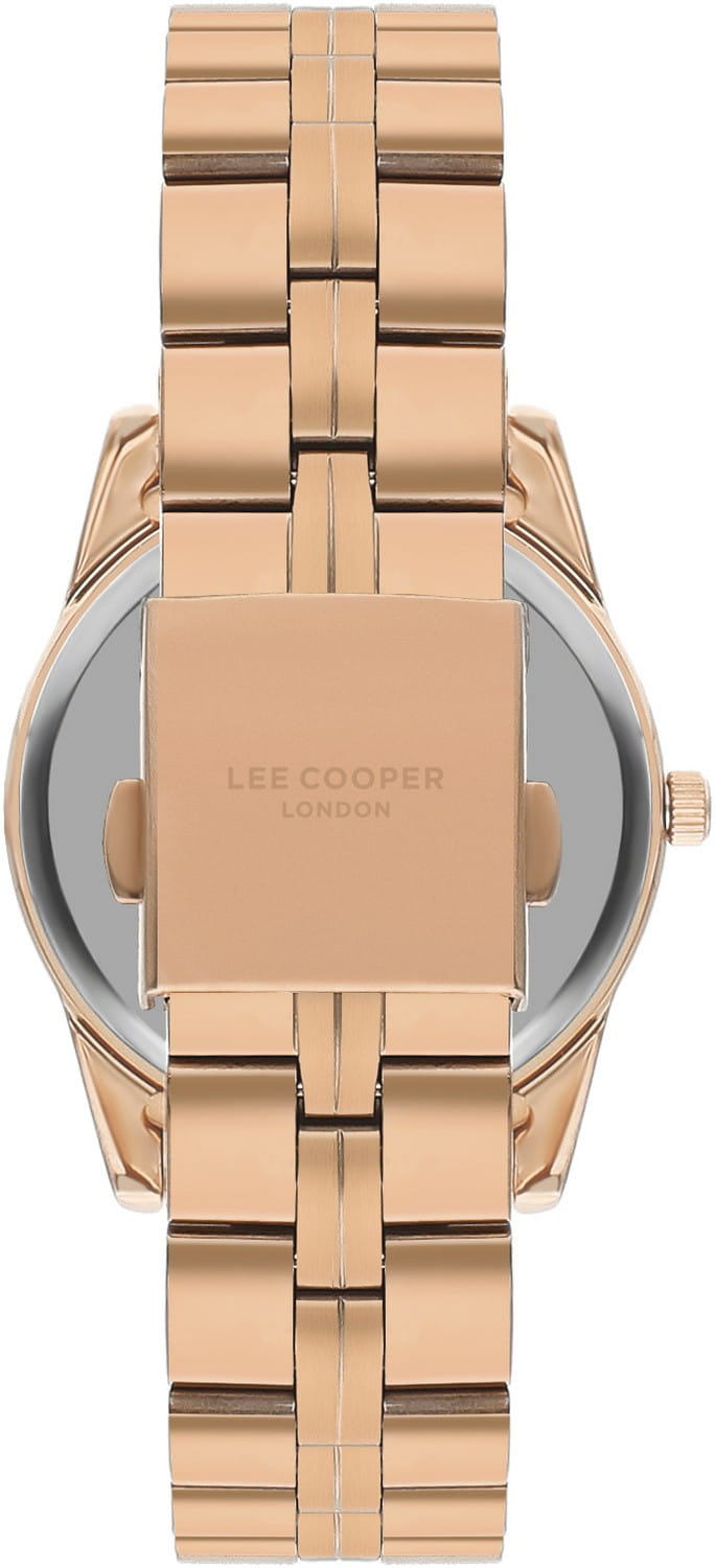 Женские наручные часы Lee Cooper LC07679.430 — это элегантная модель с утончённым дизайном. Корпус диаметром 35 мм выполнен из суперметалла с IP-покрытиемIP-покрытиеМетод ионного напыления. Демонстрирует повышенную устойчивость к истиранию, окислению и химическим веществам. Под воздействием высокого давления и температуры около 1500°C молекулы металла надёжно соединяются с частицами корпуса часов., что придаёт часам изысканный вид. Лаконичный циферблат украшен изящными метками и стрелками, обеспечивая удобное считывание времени. Циферблат защищён минеральным стекломМинеральное стеклоМинеральное стекло представляет собой искусственно выращенный минерал кварца. Такое стекло отличается особой устойчивостью к повреждениям и царапинам. Уступает по некоторым качествам сапфировому стеклу., устойчивым к царапинам. Изысканный безельБезельВнешний ободок, закрепляющий стекло. В спортивных часах так называется поворотное кольцо с делениями на циферблате, выполняет роль таймера – замеряет отрезки времени на шкале. Неподвижный безель – элемент декора. Однонаправленно вращающийся безель на дайверских часах позволяет фиксировать моменты погружения и выныривания на поверхность. украшен вставками из циркония. Часы работают на кварцевом механизме, обеспечивая точность хода. Браслет из нержавеющей стали с IP-покрытиемIP-покрытиеМетод ионного напыления. Демонстрирует повышенную устойчивость к истиранию, окислению и химическим веществам. Под воздействием высокого давления и температуры около 1500°C молекулы металла надёжно соединяются с частицами корпуса часов. имеет раскладную застёжкуРаскладная застёжкаТакой тип застёжки используется только на браслетах из металла. Она никогда не раскрывается полностью, происходит разделение на 2 и более частей. Раскладывающая застёжка снизит вероятность потери часов к минимуму., гарантирующую комфортное ношение и надёжную фиксацию на запястье. Водозащита WR30 защищает часы от случайных брызг и дождя, делая их подходящими для повседневного использования.
