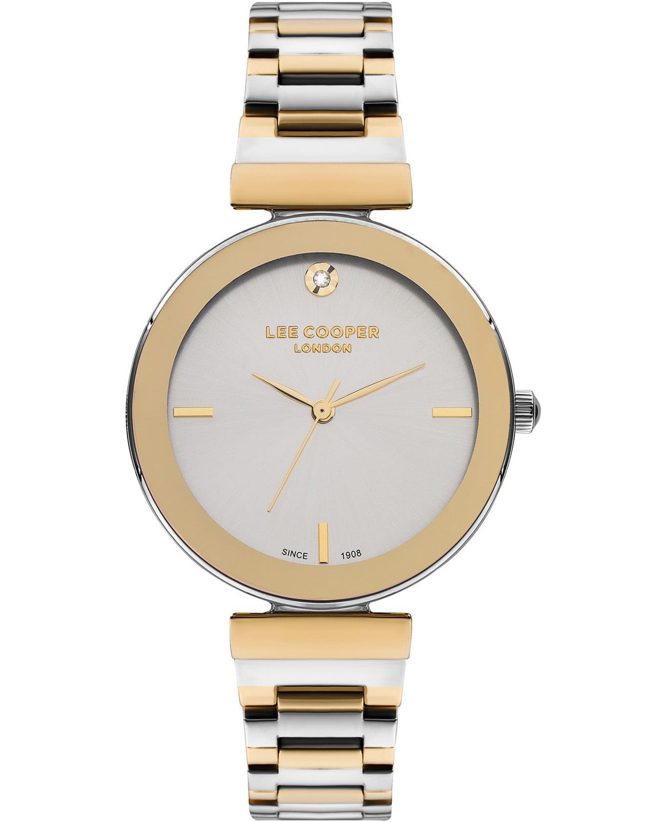 Женские часы Lee Cooper LC07711.230 — это стильное сочетание элегантности и современного дизайна. Круглый корпус диаметром 35 мм выполнен из суперметалла серебристого цвета. Неподвижный безельБезельВнешний ободок, закрепляющий стекло. В спортивных часах так называется поворотное кольцо с делениями на циферблате, выполняет роль таймера – замеряет отрезки времени на шкале. Неподвижный безель – элемент декора. Однонаправленно вращающийся безель на дайверских часах позволяет фиксировать моменты погружения и выныривания на поверхность. с IP-покрытиемIP-покрытиеМетод ионного напыления. Демонстрирует повышенную устойчивость к истиранию, окислению и химическим веществам. Под воздействием высокого давления и температуры около 1500°C молекулы металла надёжно соединяются с частицами корпуса часов. золотого цвета придает модели особый блеск. Изысканный циферблат защищен минеральным стекломМинеральное стеклоМинеральное стекло представляет собой искусственно выращенный минерал кварца. Такое стекло отличается особой устойчивостью к повреждениям и царапинам. Уступает по некоторым качествам сапфировому стеклу., обеспечивающим устойчивость к царапинам. Метки в виде штрихов. Часы оснащены надежным кварцевым механизмом, а стальной браслет с частичным IP-покрытиемIP-покрытиеМетод ионного напыления. Демонстрирует повышенную устойчивость к истиранию, окислению и химическим веществам. Под воздействием высокого давления и температуры около 1500°C молекулы металла надёжно соединяются с частицами корпуса часов. на раскладной застёжкеРаскладная застёжкаТакой тип застёжки используется только на браслетах из металла. Она никогда не раскрывается полностью, происходит разделение на 2 и более частей. Раскладывающая застёжка снизит вероятность потери часов к минимуму. гарантирует комфортную посадку на запястье. Водозащита 30 метров защищает модель от случайных брызг и дождя. Lee Cooper — отличный выбор для тех, кто ценит утонченность и качество.