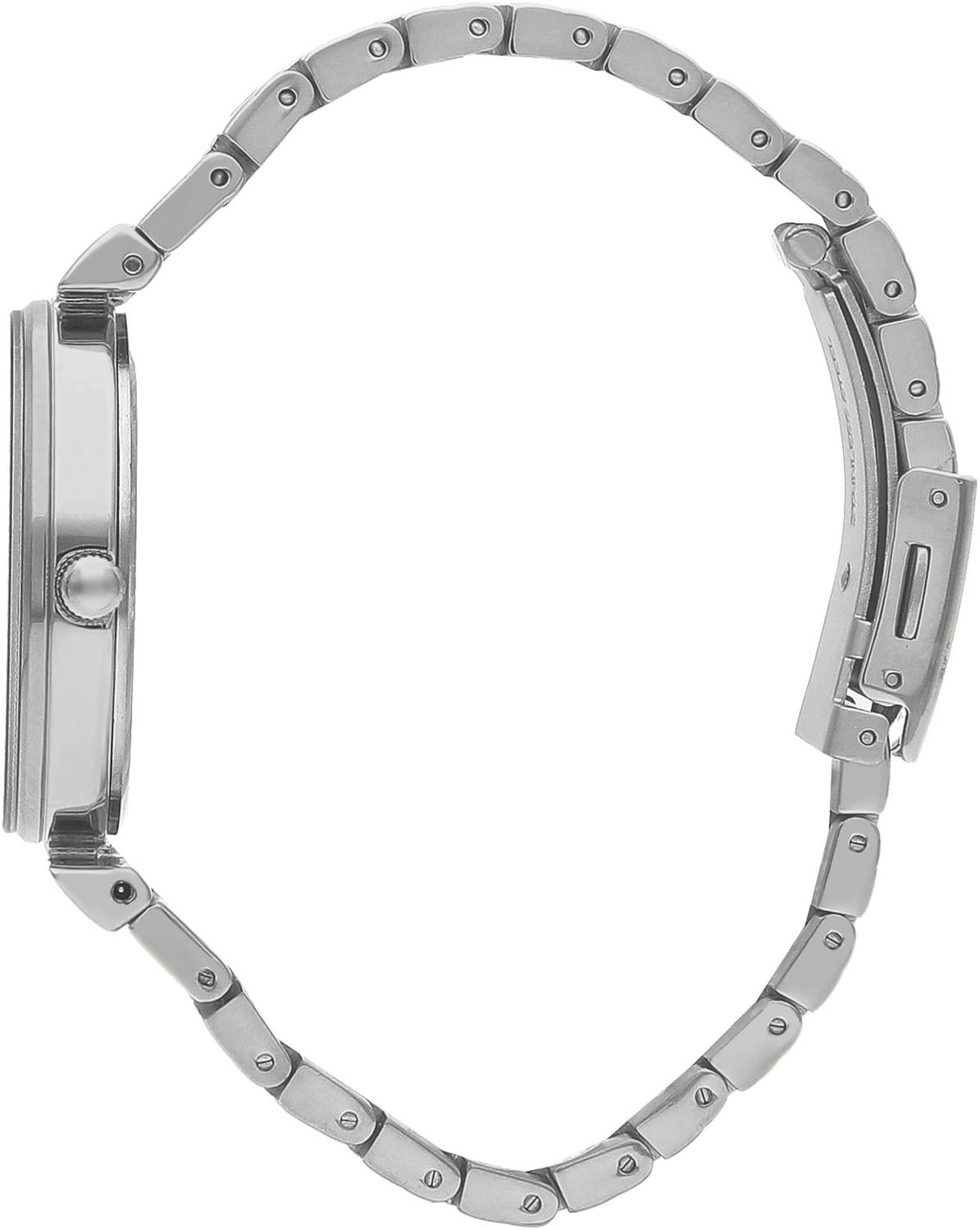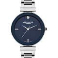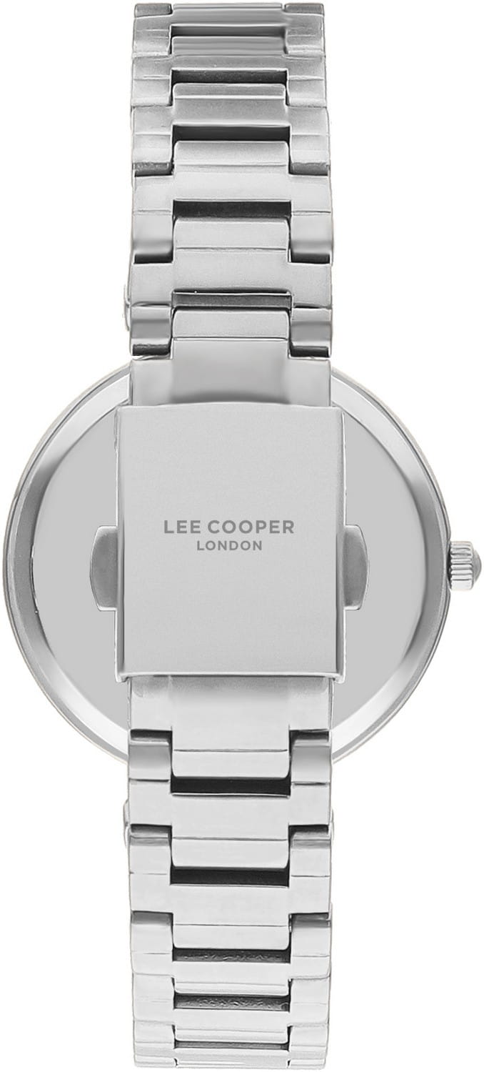 Женские часы Lee Cooper LC07711.390 — это стильное сочетание элегантности и современного дизайна. Круглый корпус диаметром 35 мм выполнен из суперметалла серебристого цвета, придающий модели особый блеск. Изысканный циферблат синего цвета защищен минеральным стекломМинеральное стеклоМинеральное стекло представляет собой искусственно выращенный минерал кварца. Такое стекло отличается особой устойчивостью к повреждениям и царапинам. Уступает по некоторым качествам сапфировому стеклу., обеспечивающим устойчивость к царапинам. Метки в виде штрихов. Часы оснащены надежным кварцевым механизмом, а стильный стальной браслет на раскладной застёжкеРаскладная застёжкаТакой тип застёжки используется только на браслетах из металла. Она никогда не раскрывается полностью, происходит разделение на 2 и более частей. Раскладывающая застёжка снизит вероятность потери часов к минимуму. гарантирует комфортную посадку на запястье. Водозащита 30 метров защищает модель от случайных брызг и дождя. Lee Cooper  — отличный выбор для тех, кто ценит утонченность и качество.