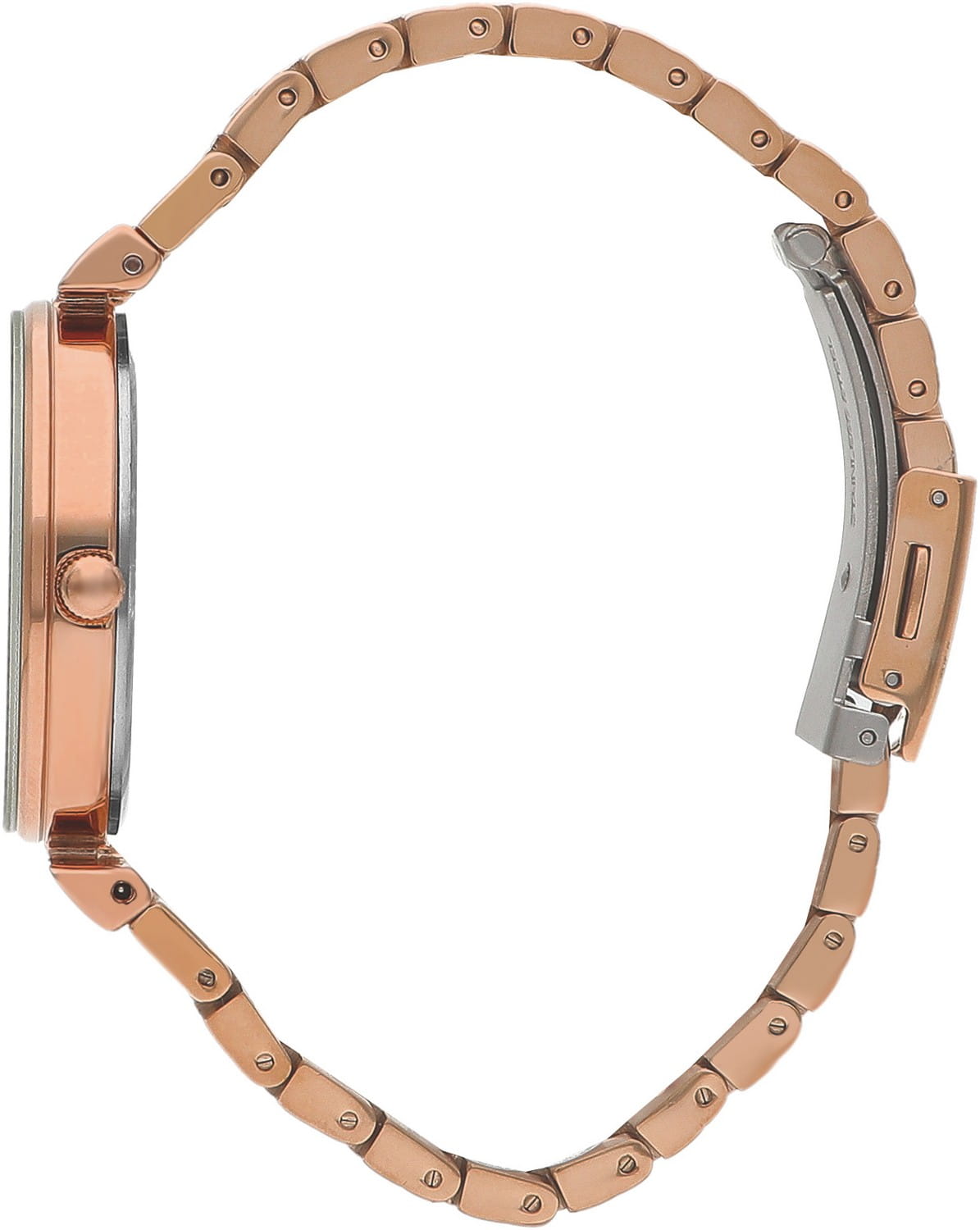 Женские часы Lee Cooper LC07711.410 — это стильное сочетание элегантности и современного дизайна. Круглый корпус диаметром 35 мм выполнен из суперметалла с IP-покрытиемIP-покрытиеМетод ионного напыления. Демонстрирует повышенную устойчивость к истиранию, окислению и химическим веществам. Под воздействием высокого давления и температуры около 1500°C молекулы металла надёжно соединяются с частицами корпуса часов. золотого цвета, придающий модели особый блеск. Изысканный циферблат защищен минеральным стекломМинеральное стеклоМинеральное стекло представляет собой искусственно выращенный минерал кварца. Такое стекло отличается особой устойчивостью к повреждениям и царапинам. Уступает по некоторым качествам сапфировому стеклу., обеспечивающим устойчивость к царапинам. Метки в виде штрихов. Часы оснащены надежным кварцевым механизмом, а стальной браслет с IP-покрытиемIP-покрытиеМетод ионного напыления. Демонстрирует повышенную устойчивость к истиранию, окислению и химическим веществам. Под воздействием высокого давления и температуры около 1500°C молекулы металла надёжно соединяются с частицами корпуса часов. на раскладной застёжкеРаскладная застёжкаТакой тип застёжки используется только на браслетах из металла. Она никогда не раскрывается полностью, происходит разделение на 2 и более частей. Раскладывающая застёжка снизит вероятность потери часов к минимуму. гарантирует комфортную посадку на запястье. Водозащита 30 метров защищает модель от случайных брызг и дождя. Lee Cooper — отличный выбор для тех, кто ценит утонченность и качество.