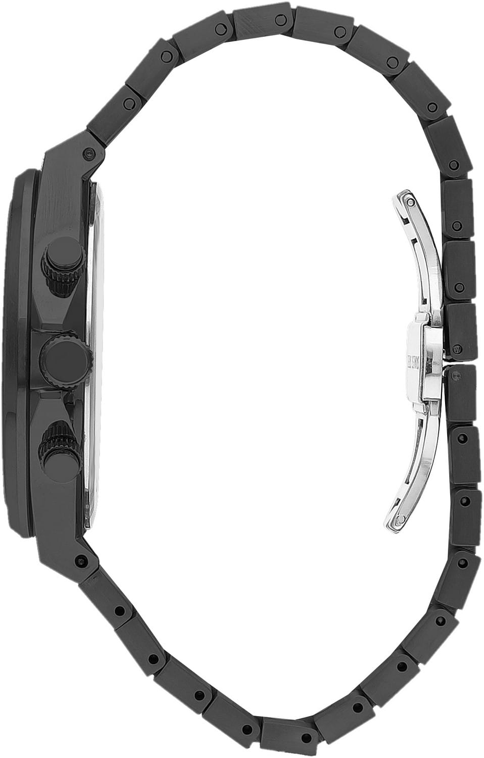 Мужские наручные часы Lee Cooper LC07717.650 — элегантная модель с функциональными возможностями для повседневного использования. Изысканный корпус из суперметалла с IP-покрытиемIP-покрытиеМетод ионного напыления. Демонстрирует повышенную устойчивость к истиранию, окислению и химическим веществам. Под воздействием высокого давления и температуры около 1500°C молекулы металла надёжно соединяются с частицами корпуса часов. черного цвета придаёт часам классический и современный вид. Чёрный циферблат оснащён дополнительными индикаторами и функцией хронографХронографФункция позволяет измерять отрезки времени с особой точностью: часы, минуты, секунды. Верным признаком хронографа является наличие на циферблате 3 дополнительных окошек-счётчиков., что позволяет измерять временные интервалы с высокой точностью. Стрелки покрыты люминесцентным покрытиемЛюминесцентное покрытиеПозволяет считывать показания времени в темноте. Производители наносят на стрелки, часовые индексы, безель или поверхность циферблата светонакопительный состав, дающий холодное свечение., обеспечивая удобное считывание показаний в условиях недостаточного освещения. Циферблат защищён минеральным стекломМинеральное стеклоМинеральное стекло представляет собой искусственно выращенный минерал кварца. Такое стекло отличается особой устойчивостью к повреждениям и царапинам. Уступает по некоторым качествам сапфировому стеклу., устойчивым к царапинам.  Часы работают на кварцевом механизме, обеспечивающем точность хода. Элегантный браслет из нержавеющей стали с IP-покрытиемIP-покрытиеМетод ионного напыления. Демонстрирует повышенную устойчивость к истиранию, окислению и химическим веществам. Под воздействием высокого давления и температуры около 1500°C молекулы металла надёжно соединяются с частицами корпуса часов. на застёжке-бабочке с кнопкамиЗастёжка "бабочка"Такой вид застёжки дополняется предохранителями, помогающими избежать случайного раскрытия браслета. Обладают изящным исполнением. гарантирует удобную посадку и надёжную фиксацию на запястье. Водозащита 50 метров защищает часы от брызг и дождя, делая их подходящими для повседневного использования.