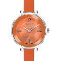 Женские часы Lee Cooper LC07813.380 выполнены в классическом стиле и сочетают строгий дизайн с надёжным механизмом. Модель оснащена кварцевым механизмом, обеспечивающим точность хода и минимальное обслуживание. Корпус круглой формы имеет размер 32 мм, изготовлен из суперметалла, гарантирует комфорт при ношении. Циферблат оранжевого цвета дополнен индексами для чёткого отсчёта времени. Защиту циферблата обеспечивает минеральное стеклоМинеральное стеклоМинеральное стекло представляет собой искусственно выращенный минерал кварца. Такое стекло отличается особой устойчивостью к повреждениям и царапинам. Уступает по некоторым качествам сапфировому стеклу., устойчивое к мелким механическим повреждениям. Изысканный стальной браслет с керамическими вставками на раскладной застёжкеРаскладная застёжкаТакой тип застёжки используется только на браслетах из металла. Она никогда не раскрывается полностью, происходит разделение на 2 и более частей. Раскладывающая застёжка снизит вероятность потери часов к минимуму. гарантирует комфортную посадку на запястье. Водозащита 3 АТМ позволяет использовать часы в повседневных условиях без риска повреждения от случайных брызг воды. В комплекте к часам идет дополнительный браслет в цвет часов. Это сочетание классического дизайна, прочности материалов и качества исполнения для уверенных в себе женщин.