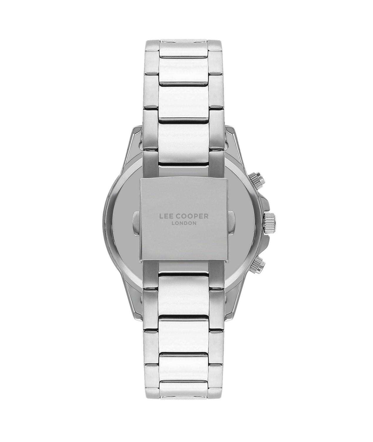 Lee Cooper LC07817.350 — элегантная модель с функциональными возможностями для повседневного использования. Корпус из суперметалла и диаметром 45 мм придаёт часам классический и современный вид. Циферблат защищён минеральным стекломМинеральное стеклоМинеральное стекло представляет собой искусственно выращенный минерал кварца. Такое стекло отличается особой устойчивостью к повреждениям и царапинам. Уступает по некоторым качествам сапфировому стеклу., устойчивым к царапинам, хорошо может выдержать небольшие удары и падения. Стильный циферблат оформлен изысканными индексами и дополнен окошками даты, дня недели и 24-часового индикатора, а также аккуратными метками и стрелками с люминесцентным покрытиемЛюминесцентное покрытиеПозволяет считывать показания времени в темноте. Производители наносят на стрелки, часовые индексы, безель или поверхность циферблата светонакопительный состав, дающий холодное свечение., что гарантирует читаемость даже в условиях недостаточного освещения. Часы работают на кварцевом механизме, обеспечивающем точность хода. Стальной браслет на раскладной застёжкеРаскладная застёжкаТакой тип застёжки используется только на браслетах из металла. Она никогда не раскрывается полностью, происходит разделение на 2 и более частей. Раскладывающая застёжка снизит вероятность потери часов к минимуму. гарантирует удобную посадку и надёжную фиксацию на запястье. Водозащита 50 метров защищает часы от брызг и дождя, делая их подходящими для повседневного использования.