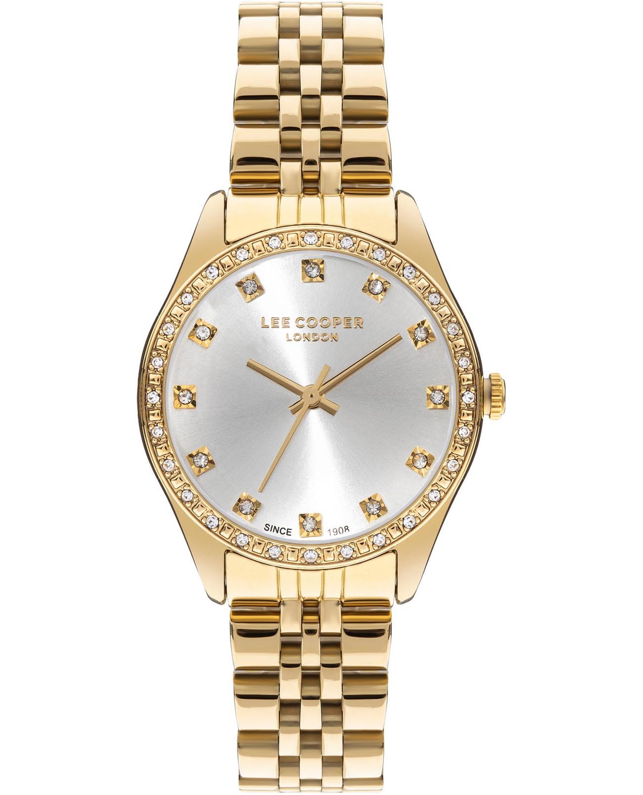 Женские часы Lee Cooper LC07818.130 выполнены в классическом стиле и сочетают строгий дизайн с надёжным механизмом. Модель оснащена кварцевым механизмом , обеспечивающим точность хода и минимальное обслуживание. Корпус круглой формы имеет размер 33 мм, изготовлен из суперметалла с IP-покрытиемIP-покрытиеМетод ионного напыления. Демонстрирует повышенную устойчивость к истиранию, окислению и химическим веществам. Под воздействием высокого давления и температуры около 1500°C молекулы металла надёжно соединяются с частицами корпуса часов. золотистого цвета, гарантирует комфорт при ношении. Циферблат серебристого цвета дополнен изысканными вставками из циркона для чёткого отсчёта времени. Защиту циферблата обеспечивает минеральное стеклоМинеральное стеклоМинеральное стекло представляет собой искусственно выращенный минерал кварца. Такое стекло отличается особой устойчивостью к повреждениям и царапинам. Уступает по некоторым качествам сапфировому стеклу., устойчивое к мелким механическим повреждениям. Стальной браслет с IP-покрытиемIP-покрытиеМетод ионного напыления. Демонстрирует повышенную устойчивость к истиранию, окислению и химическим веществам. Под воздействием высокого давления и температуры около 1500°C молекулы металла надёжно соединяются с частицами корпуса часов. на раскладной застёжкеРаскладная застёжкаТакой тип застёжки используется только на браслетах из металла. Она никогда не раскрывается полностью, происходит разделение на 2 и более частей. Раскладывающая застёжка снизит вероятность потери часов к минимуму. гарантирует удобную посадку и надёжную фиксацию на запястье. Водозащита 30WR позволяет использовать часы в повседневных условиях без риска повреждения от случайных брызг воды. Это сочетание классического дизайна, прочности материалов и качества исполнения для уверенных в себе женщин.