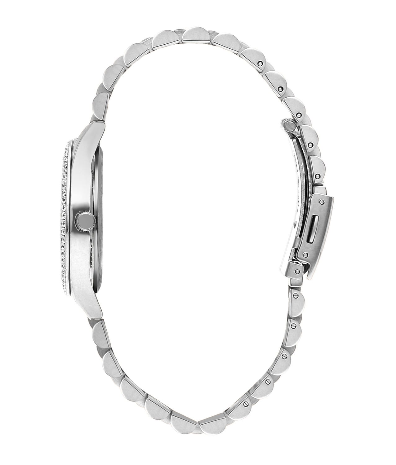 Женские часы Lee Cooper LC07826.220 выполнены в классическом стиле и сочетают строгий дизайн с надёжным механизмом. Модель оснащена кварцевым механизмом, обеспечивающим точность хода и минимальное обслуживание. Корпус круглой формы имеет размер 35 мм, изготовлен из суперметалла с изысканным неподвижным безелемБезельВнешний ободок, закрепляющий стекло. В спортивных часах так называется поворотное кольцо с делениями на циферблате, выполняет роль таймера – замеряет отрезки времени на шкале. Неподвижный безель – элемент декора. Однонаправленно вращающийся безель на дайверских часах позволяет фиксировать моменты погружения и выныривания на поверхность. с вставками из циркона, гарантирует комфорт при ношении. Циферблат дополнен изящными вставками из циркона для чёткого отсчёта времени. Защиту циферблата обеспечивает минеральное стеклоМинеральное стеклоМинеральное стекло представляет собой искусственно выращенный минерал кварца. Такое стекло отличается особой устойчивостью к повреждениям и царапинам. Уступает по некоторым качествам сапфировому стеклу., устойчивое к мелким механическим повреждениям. Стрелки с люминесцентным покрытиемЛюминесцентное покрытиеПозволяет считывать показания времени в темноте. Производители наносят на стрелки, часовые индексы, безель или поверхность циферблата светонакопительный состав, дающий холодное свечение.. Стальной браслет с частичным IP-покрытиемIP-покрытиеМетод ионного напыления. Демонстрирует повышенную устойчивость к истиранию, окислению и химическим веществам. Под воздействием высокого давления и температуры около 1500°C молекулы металла надёжно соединяются с частицами корпуса часов. на раскладной застёжкеРаскладная застёжкаТакой тип застёжки используется только на браслетах из металла. Она никогда не раскрывается полностью, происходит разделение на 2 и более частей. Раскладывающая застёжка снизит вероятность потери часов к минимуму. гарантирует удобную посадку и надёжную фиксацию на запястье. Водозащита 30WR позволяет использовать часы в повседневных условиях без риска повреждения от случайных брызг воды. Это сочетание классического дизайна, прочности материалов и качества исполнения для уверенных в себе женщин.