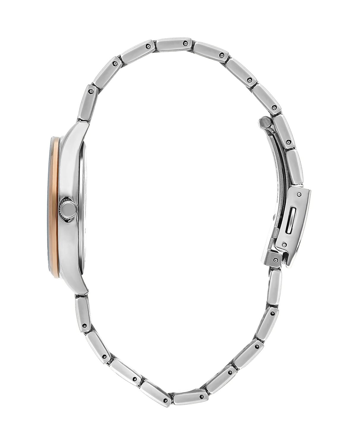Женские часы Lee Cooper LC07832.520 выполнены в классическом стиле и сочетают строгий дизайн с надёжным механизмом. Модель оснащена кварцевым механизмом, обеспечивающим точность хода и минимальное обслуживание. Корпус круглой формы имеет размер 34 мм, изготовлен из суперметалла с изысканным неподвижным безелемБезельВнешний ободок, закрепляющий стекло. В спортивных часах так называется поворотное кольцо с делениями на циферблате, выполняет роль таймера – замеряет отрезки времени на шкале. Неподвижный безель – элемент декора. Однонаправленно вращающийся безель на дайверских часах позволяет фиксировать моменты погружения и выныривания на поверхность. с IP-покрытиемIP-покрытиеМетод ионного напыления. Демонстрирует повышенную устойчивость к истиранию, окислению и химическим веществам. Под воздействием высокого давления и температуры около 1500°C молекулы металла надёжно соединяются с частицами корпуса часов., гарантирует комфорт при ношении. Циферблат дополнен изящными вставками из циркона для чёткого отсчёта времени. Защиту циферблата обеспечивает минеральное стеклоМинеральное стеклоМинеральное стекло представляет собой искусственно выращенный минерал кварца. Такое стекло отличается особой устойчивостью к повреждениям и царапинам. Уступает по некоторым качествам сапфировому стеклу., устойчивое к мелким механическим повреждениям. Стрелки с люминесцентным покрытиемЛюминесцентное покрытиеПозволяет считывать показания времени в темноте. Производители наносят на стрелки, часовые индексы, безель или поверхность циферблата светонакопительный состав, дающий холодное свечение.. Стальной браслет с частичным IP-покрытиемIP-покрытиеМетод ионного напыления. Демонстрирует повышенную устойчивость к истиранию, окислению и химическим веществам. Под воздействием высокого давления и температуры около 1500°C молекулы металла надёжно соединяются с частицами корпуса часов. на раскладной застёжкеРаскладная застёжкаТакой тип застёжки используется только на браслетах из металла. Она никогда не раскрывается полностью, происходит разделение на 2 и более частей. Раскладывающая застёжка снизит вероятность потери часов к минимуму. гарантирует удобную посадку и надёжную фиксацию на запястье. Водозащита 30WR позволяет использовать часы в повседневных условиях без риска повреждения от случайных брызг воды. Это сочетание классического дизайна, прочности материалов и качества исполнения для уверенных в себе женщин.