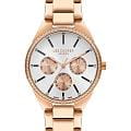 Женские часы Lee Cooper LC07863.430 — это стильное сочетание элегантности и современного дизайна. Круглый корпус диаметром 34 мм выполнен из суперметалла с IP-покрытиемIP-покрытиеМетод ионного напыления. Демонстрирует повышенную устойчивость к истиранию, окислению и химическим веществам. Под воздействием высокого давления и температуры около 1500°C молекулы металла надёжно соединяются с частицами корпуса часов. золотого цвета, а неподвижный безельБезельВнешний ободок, закрепляющий стекло. В спортивных часах так называется поворотное кольцо с делениями на циферблате, выполняет роль таймера – замеряет отрезки времени на шкале. Неподвижный безель – элемент декора. Однонаправленно вращающийся безель на дайверских часах позволяет фиксировать моменты погружения и выныривания на поверхность. украшен цирконами, придающими модели особый блеск. Серебристый циферблат защищен минеральным стекломМинеральное стеклоМинеральное стекло представляет собой искусственно выращенный минерал кварца. Такое стекло отличается особой устойчивостью к повреждениям и царапинам. Уступает по некоторым качествам сапфировому стеклу., обеспечивающим устойчивость к царапинам. Метки в виде штрихов. Часы оснащены надежным кварцевым механизмом, а металлический браслет с IP-покрытиемIP-покрытиеМетод ионного напыления. Демонстрирует повышенную устойчивость к истиранию, окислению и химическим веществам. Под воздействием высокого давления и температуры около 1500°C молекулы металла надёжно соединяются с частицами корпуса часов. на раскладной застёжкеРаскладная застёжкаТакой тип застёжки используется только на браслетах из металла. Она никогда не раскрывается полностью, происходит разделение на 2 и более частей. Раскладывающая застёжка снизит вероятность потери часов к минимуму. гарантирует комфортную посадку на запястье. Мультифункциональная модель с индикацией даты, дня недели, с дополнительным 24-х часовым индикатором. Водозащита 30 метров защищает модель от случайных брызг и дождя. Lee Cooper — отличный выбор для тех, кто ценит утонченность и качество.