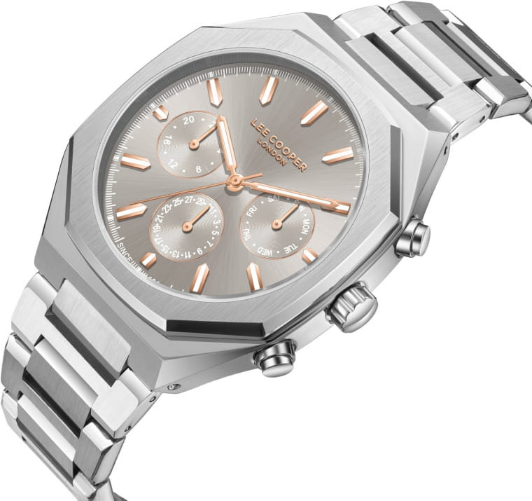 Мужские наручные часы Lee Cooper LC08045.360 — это стильная модель из коллекции Contemporary, сочетающая в себе современный дизайн и функциональность. Часы оснащены кварцевым механизмом японского производства, который обеспечивает высокую точность хода и минимальное энергопотребление. Корпус часов изготовлен из высококачественного суперметалла серебристого цвета, что делает их устойчивыми к внешним воздействиям и придает благородный вид. Бежевый циферблат украшен стрелками и индексами серебристого цвета, гармонично дополняющими общий дизайн модели. Для защиты циферблата используется минеральное стеклоМинеральное стеклоМинеральное стекло представляет собой искусственно выращенный минерал кварца. Такое стекло отличается особой устойчивостью к повреждениям и царапинам. Уступает по некоторым качествам сапфировому стеклу., устойчивое к царапинам и механическим повреждениям. Корпус имеет круглую форму с диаметром 43 мм, что делает часы заметными и подходящими для повседневной носки. Браслет изготовлен из металла серебристого цвета, гармонично дополняя общий дизайн модели. Модель обладает водонепроницаемостью до 50 метров (5 АТМ), что позволяет использовать часы в повседневной жизни, включая контакт с водой при мытье рук или дожде. Эти часы станут идеальным выбором для мужчин, ценящих стиль, качество и функциональность.