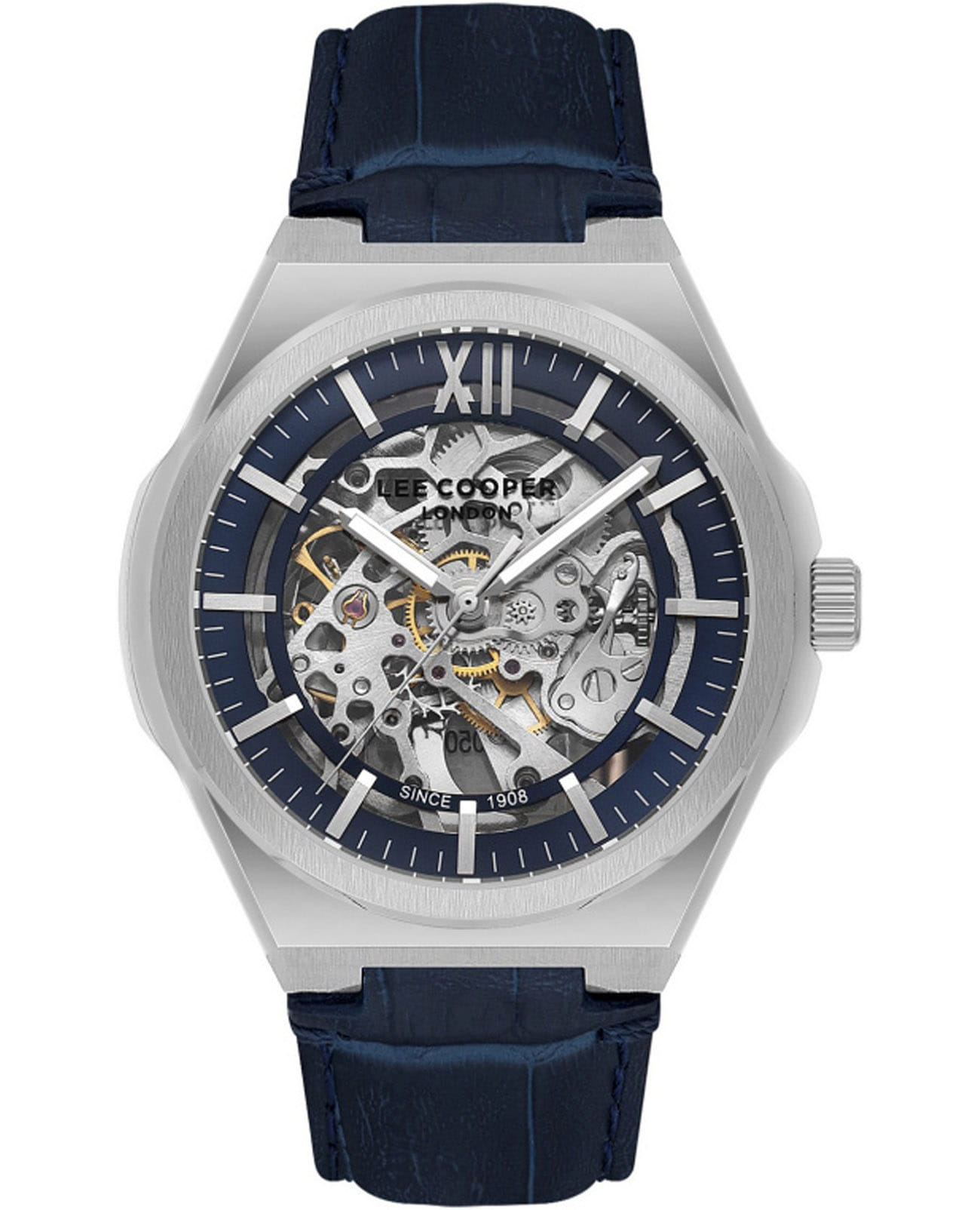 Мужские наручные часы Lee Cooper Мужские наручные часы Lee CoopeLC08050.399 — это стильная модель, сочетающая в себе современный дизайн и функциональность. Корпус часов выполнен из нержавеющей стали серебристого цвета, что делает их устойчивыми к внешним воздействиям и придает благородный вид. Часы оснащены автоподзаводом калибра G3265ZH, который заряжается от движения руки и обеспечивает высокую точность хода. Серо-синий циферблат украшен скелетонизированным дизайном, позволяющим наблюдать за работой механизма, что делает часы не только функциональными, но и визуально привлекательными. Для защиты циферблата используется минеральное стеклоМинеральное стеклоМинеральное стекло представляет собой искусственно выращенный минерал кварца. Такое стекло отличается особой устойчивостью к повреждениям и царапинам. Уступает по некоторым качествам сапфировому стеклу., устойчивое к царапинам и механическим повреждениям. Корпус имеет круглую форму диаметром 43 мм, что делает часы заметными и подходящими для повседневного ношения. Ремешок из натуральной кожи с тиснением "под крокодила". Застежка стандартная классическая. Модель обладает водонепроницаемостью до 50 метров (5 АТМ), что позволяет использовать часы в повседневной жизни, включая контакт с водой при мытье рук или дожде. Эти часы станут идеальным выбором для мужчин, ценящих стиль, качество и функциональность.