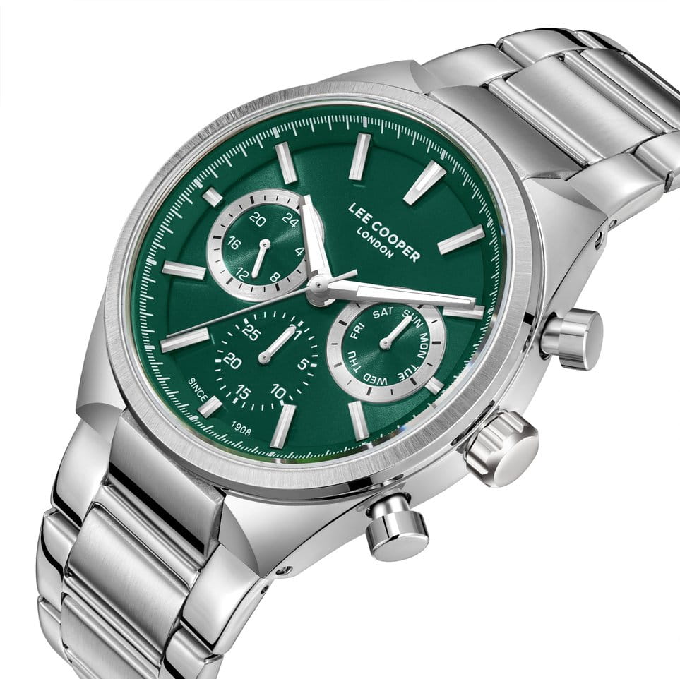 Мужские наручные часы Lee Cooper LC08174.370 оснащены кварцевым механизмом, обеспечивающий высокую точность хода и надежность. Элегантный корпус часов выполнен из суперметалла серебристого цвета, что делает их устойчивыми к внешним воздействиям и придает благородный вид. Циферблат украшен классическими стрелками и метками с люминесцентным покрытиемЛюминесцентное покрытиеПозволяет считывать показания времени в темноте. Производители наносят на стрелки, часовые индексы, безель или поверхность циферблата светонакопительный состав, дающий холодное свечение., гармонично дополняющим общий дизайн модели. Для защиты циферблата используется минеральное стеклоМинеральное стеклоМинеральное стекло представляет собой искусственно выращенный минерал кварца. Такое стекло отличается особой устойчивостью к повреждениям и царапинам. Уступает по некоторым качествам сапфировому стеклу., устойчивое к царапинам и механическим повреждениям. Корпус имеет круглую форму диаметром 42 мм, что делает часы заметными и подходящими. Браслет из стали оснащен раскладной застёжкойРаскладная застёжкаТакой тип застёжки используется только на браслетах из металла. Она никогда не раскрывается полностью, происходит разделение на 2 и более частей. Раскладывающая застёжка снизит вероятность потери часов к минимуму., обеспечивающим комфортное и безопасное ношение. Вынесенный циферблат с 24-х часовым указателем времени, индикацией даты и дня недели. Часы обладают водонепроницаемостью до 50 метров (5 АТМ), что позволяет использовать их в повседневной жизни, включая контакт с водой при мытье рук или дожде. Эти часы станут идеальным выбором для мужчин, ценящих стиль, качество и функциональность.