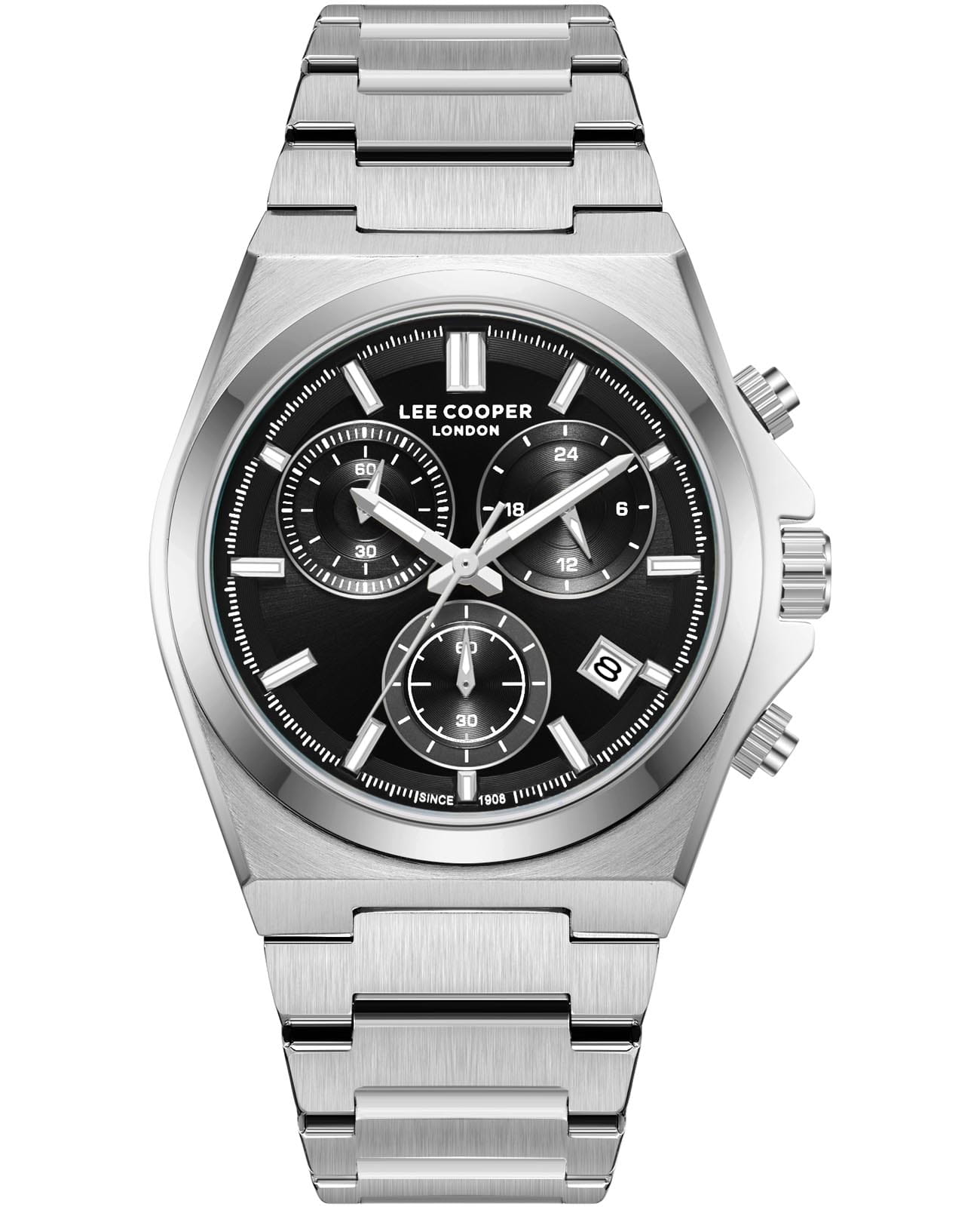 Мужские наручные часы-хронографХронографФункция позволяет измерять отрезки времени с особой точностью: часы, минуты, секунды. Верным признаком хронографа является наличие на циферблате 3 дополнительных окошек-счётчиков. Lee Cooper LC08188.350 оснащены кварцевым механизмом, обеспечивающий высокую точность хода и надежность. Элегантный корпус часов выполнен из суперметалла серебристого цвета, что делает их устойчивыми к внешним воздействиям и придает благородный вид. Циферблат украшен классическими стрелками и метками с люминесцентным покрытиемЛюминесцентное покрытиеПозволяет считывать показания времени в темноте. Производители наносят на стрелки, часовые индексы, безель или поверхность циферблата светонакопительный состав, дающий холодное свечение., гармонично дополняющим общий дизайн модели. Для защиты циферблата используется минеральное стеклоМинеральное стеклоМинеральное стекло представляет собой искусственно выращенный минерал кварца. Такое стекло отличается особой устойчивостью к повреждениям и царапинам. Уступает по некоторым качествам сапфировому стеклу., устойчивое к царапинам и механическим повреждениям. Корпус имеет круглую форму диаметром 41 мм, что делает часы заметными и подходящими. Браслет из стали оснащен раскладной застёжкойРаскладная застёжкаТакой тип застёжки используется только на браслетах из металла. Она никогда не раскрывается полностью, происходит разделение на 2 и более частей. Раскладывающая застёжка снизит вероятность потери часов к минимуму., обеспечивающим комфортное и безопасное ношение. Вынесенный циферблат с 24-х часовым указателем времени, индикацией даты и дня недели. Окошко даты находится в положении между 4 и 5 часов. Часы обладают водонепроницаемостью до 30 метров (3 АТМ), что позволяет использовать их в повседневной жизни, включая контакт с водой при мытье рук или дожде. Эти часы станут идеальным выбором для мужчин, ценящих стиль, качество и функциональность.