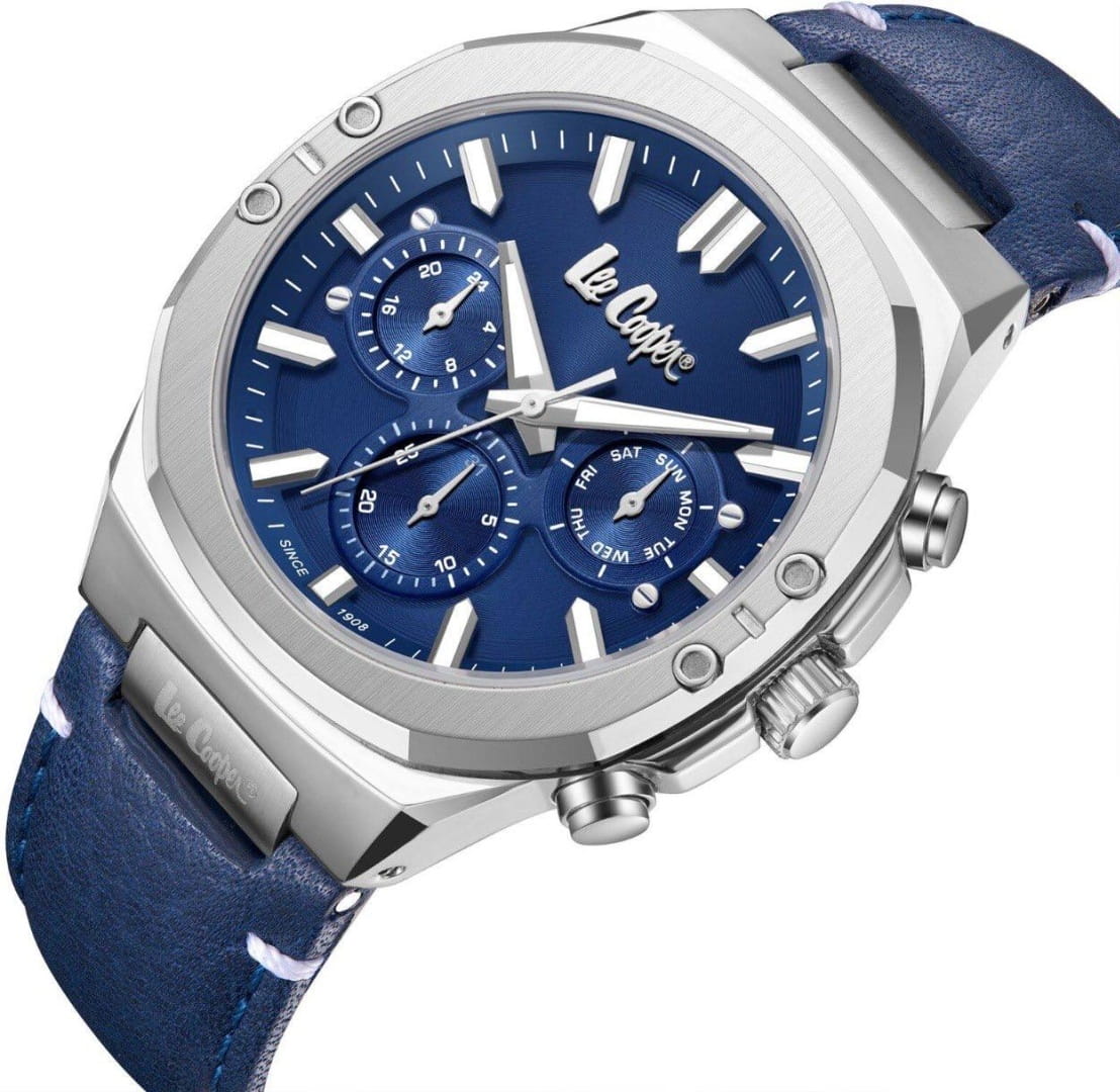 Мужские часы Lee Cooper LC07992.399 – это стильное и современное решение для тех, кто ценит качество и элегантность. Эти часы идеально подойдут как для повседневной носки, так и для особых случаев. Корпус диаметром 44 мм изготовлен из суперметалла, что обеспечивает долговечность. Минеральное стеклоМинеральное стеклоМинеральное стекло представляет собой искусственно выращенный минерал кварца. Такое стекло отличается особой устойчивостью к повреждениям и царапинам. Уступает по некоторым качествам сапфировому стеклу. надёжно защищает циферблат от царапин и повреждений, сохраняя его безупречный вид. Часы оснащены высокоточным кварцевым механизмом, который гарантирует стабильный ход и надёжность в эксплуатации. Уровень водонепроницаемости 50 метров позволяет не беспокоиться о случайных брызгах воды в повседневной жизни, но не рекомендуется использовать часы при плавании. Удобный и прочный кожаный ремешок синего цвета, выполненный из качественных материалов, дополнен классическим замком, что обеспечивает комфортную посадку и надёжность при носке. Часы LC07992.399 обладают современным и лаконичным дизайном, который прекрасно гармонирует с любым стилем одежды. Эта модель – отличный выбор для тех, кто ищет сочетание стиля, качества и функциональности. Часы станут не только полезным аксессуаром, но и выразительным элементом вашего имиджа.