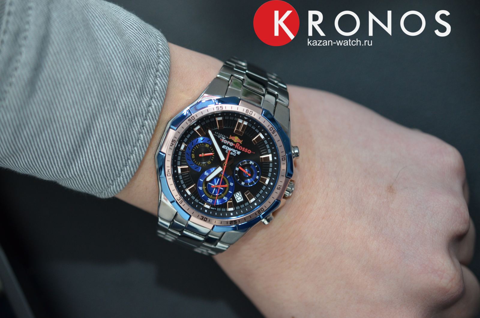 Новые CASIO Scuderia Toro Rosso Limited Edition EFR-554TR-2AER отличает большой логотип этой команды на циферблате. Окантовка индикаторов хронографа выполнена в командных цветах Toro Rosso. Комбинированный безель с IP-покрытием цвета золота и «перламутровым» напылением глубокого синего цвета, характерным для «формулической» линейкиEdifice Red Bull Racing & Scuderia Toro Rosso. Аппликация часовых индексов так же имеет покрытие цвета розового золота. Корпус из нержавеющей стали своими размерами ничем не отличается от серийных моделей Edifice EFR-554. Браслет с литыми звеньями из нержавеющей стали и минеральное стекло, защищающее циферблат. CASIO Scuderia Toro Rosso Limited Edition EFR-554TR-2A поставляются в специальной упаковке, снабженной изображением гоночного болида.