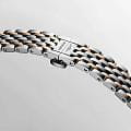 украшен 64 бриллиантами Top Wesselton IF-VVS общим весом 0,435 карата. Автоматический механизм L592 обеспечивает высокую точность и простоту использования. Водостойкость до 30 метров позволит плавать, нырять и заниматься другими водными видами спорта. Изысканный браслет выполнен из нержавеющей стали и частичным 18-каратным золотом18-каратное золотоОбозначение по каратной системе пробирования, оно показывает, сколько драгоценного металла содержится в изделии. 18 карат - в составе 75% чистого золота, соответствует 750 пробе.