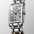 Женские швейцарские часы Longines DolceVita L52555717, кварцевый механизм с высокой точностью. Сапфировое стеклоСапфировое стеклоПрочный и надёжный материал из кристалла сапфира синтетического происхождения, характеризующийся особой твёрдостью и устойчивостью к царапинам и повреждениям. устойчивое к появлению царапин, обладающее высокой прозрачностью. Корпус часов изготовлен из нержавеющей стали. Циферблат украшен римскими цифрами. Окошко даты в положении 6 часов. Класс водозащиты: 30 метров, позволит защитить корпус от случайных брызг или капель дождя. Браслет из нержавеющей стали и 18-каратного золота на застёжке «бабочка» с кнопкамиЗастёжка "бабочка"Такой вид застёжки дополняется предохранителями, помогающими избежать случайного раскрытия браслета. Обладают изящным исполнением. .