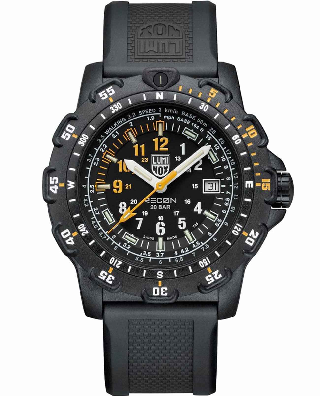 Часы Luminox RECON Point Man 8820 Series Heritage XL.8825.H.SET представляют собой идеальный выбор для тех, кто ценит надежность и функциональность в сочетании с современным дизайном. Эти наручные часы, разработанные для активного отдыха, обладают диаметром корпуса 45 мм и впечатляющим набором характеристик. Эта модель часов отдает дань уважения разведывательным подразделениям, предлагая изысканный и эффективный навигационный инструмент для военнослужащих и исследователей, стремящихся уверенно перемещаться по различным ландшафтам. Корпус и безель часов выполнены из карбонаКарбонОт «carbon», «carbone» - углерод, углепластик - полимерный композиционный материал из переплетённых под определенным углом между собой нитей углеродного волокна, применяется для изготовления лёгких, но прочных деталей. В часах часто используют для украшения циферблатов и ремешков. Так же карбон используется в изготовлении корпусов. Такие корпуса обладают антикоррозионным свойством, не поддаются электромагнитному излучению, обладают повышенной прочностью и противоударностью. CARBONOX, что обеспечивает прочность и легкость конструкции. Технология Luminox Light обеспечивает отличную читаемость в любых условиях освещения, позволяя владельцу всегда оставаться в курсе времени. Внутренний безельБезельВнешний ободок, закрепляющий стекло. В спортивных часах так называется поворотное кольцо с делениями на циферблате, выполняет роль таймера – замеряет отрезки времени на шкале. Неподвижный безель – элемент декора. Однонаправленно вращающийся безель на дайверских часах позволяет фиксировать моменты погружения и выныривания на поверхность. оснащен кардинальными точками, а также тахиметром для измерения скорости передвижения, с маркерами в километрах и милях на циферблате, что делает часы идеальными для точной и уверенной навигации. Каждая модель из коллекции Heritage поставляется с памятной монетой Luminox Challenge, отмечающей 35-летие бренда в создании высокопроизводительных спортивных часов с непревзойденной подсветкой. Часы комплектуются двумя ремешками: черным резиновым с фирменной с классической застежкой и дополнительным черным нейлоновым ремешком, которые упакованы в стильную коробку.Технические характеристики включают швейцарский кварцевый механизм Ronda 515 с запасом хода до 50 месяцев. Постоянное свечение гарантирует видимость до 25 лет при любом освещении. Часы обладают водозащитой до 200 метров, что подтверждает их пригодность для активного образа жизни. Сапфировое стеклоСапфировое стеклоПрочный и надёжный материал из кристалла сапфира синтетического происхождения, характеризующийся особой твёрдостью и устойчивостью к царапинам и повреждениям. с антибликовым покрытиемАнтибликовое покрытиеСлой оксида металла в 0,13-0,3 микрон, благодаря которому стекло часов не бликует и не отражает свет. Антибликовое покрытие уменьшает отражение света в 10 раз, обеспечивая отличную читаемость показателей циферблата. подчеркивает высокое качество исполнения. Общий вес часов составляет 70 граммов, и они полностью нейтральны по выбросам CO2, соответствуя международным экологическим стандартам. Сделано в Швейцарии, эти часы являются символом точности и качества.
