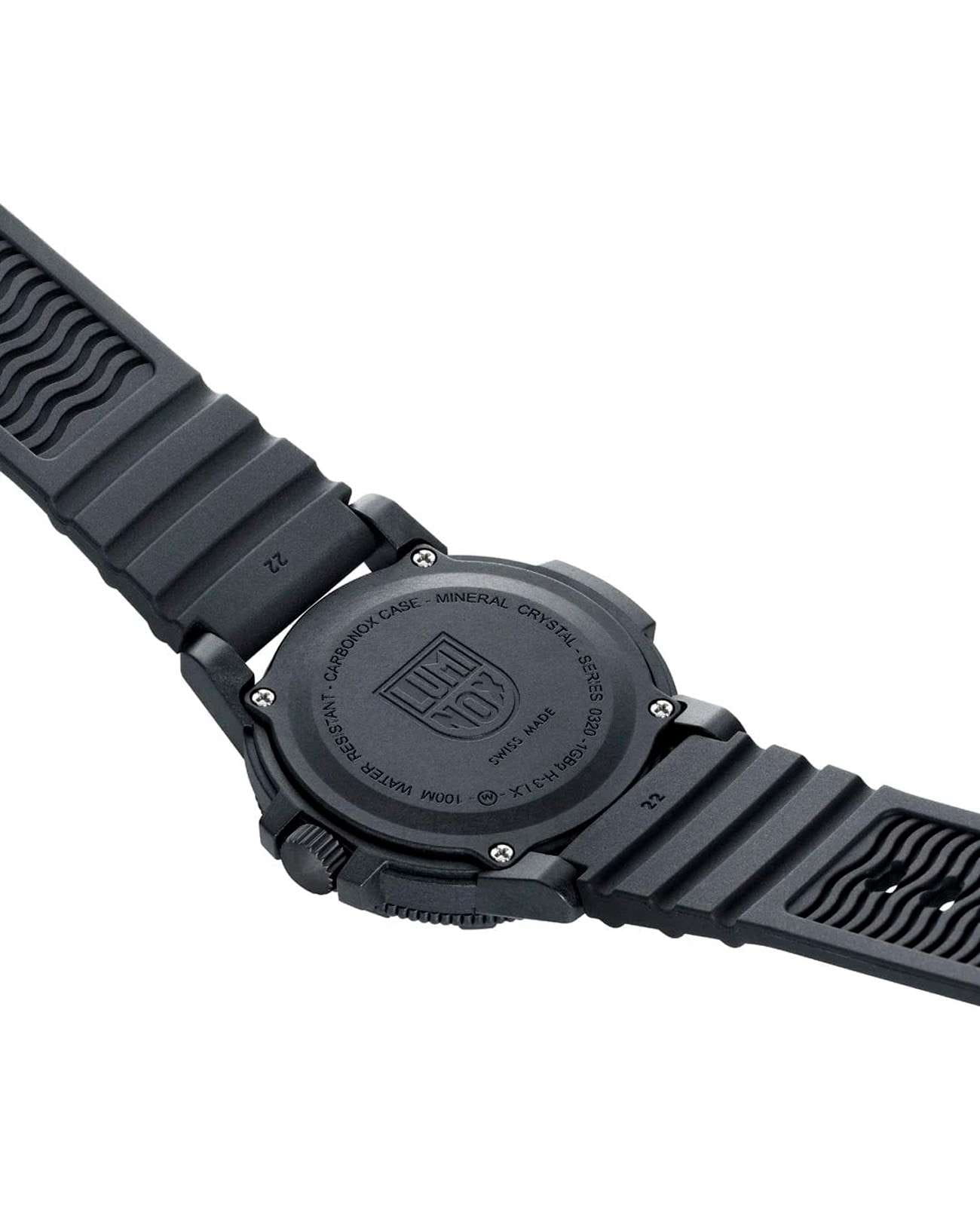 Мужские наручные часы Luminox XS.0330 из коллекции Leatherback SEA Turtle Giant сочетают в себе спортивный дизайн и надежность швейцарского качества. Модель обладает круглым корпусом диаметром 44 мм, изготовленным из карбонаКарбонОт «carbon», «carbone» - углерод, углепластик - полимерный композиционный материал из переплетённых под определенным углом между собой нитей углеродного волокна, применяется для изготовления лёгких, но прочных деталей. В часах часто используют для украшения циферблатов и ремешков. Так же карбон используется в изготовлении корпусов. Такие корпуса обладают антикоррозионным свойством, не поддаются электромагнитному излучению, обладают повышенной прочностью и противоударностью. (CARBONOX™), что обеспечивает высокую устойчивость к внешним воздействиям при сохранении легкости. Циферблат черного цвета украшен контрастными метками и стрелками с , гарантирующим постоянную видимость времени даже в условиях низкой освещенности. Часы оснащены кварцевым механизмом Ronda 515 швейцарского производства, обеспечивающим точность хода ±15 секунд в месяц. Защиту циферблата обеспечивает прочное минеральное стеклоМинеральное стеклоМинеральное стекло представляет собой искусственно выращенный минерал кварца. Такое стекло отличается особой устойчивостью к повреждениям и царапинам. Уступает по некоторым качествам сапфировому стеклу., устойчивое к царапинам и механическим повреждениям. Водонепроницаемость модели достигает 10 атмосфер (100 метров), что делает их подходящими для плавания и активного отдыха на воде. Модель также оснащена безелемБезельВнешний ободок, закрепляющий стекло. В спортивных часах так называется поворотное кольцо с делениями на циферблате, выполняет роль таймера – замеряет отрезки времени на шкале. Неподвижный безель – элемент декора. Однонаправленно вращающийся безель на дайверских часах позволяет фиксировать моменты погружения и выныривания на поверхность. с односторонним вращением, что добавляет функциональности при использовании в водных условиях . Ремешок выполнен из черного каучука, что обеспечивает комфортное ношение в течение дня. Дополнительно часы имеют окно даты в положении «3 часа», что делает их практичными для повседневного использования.