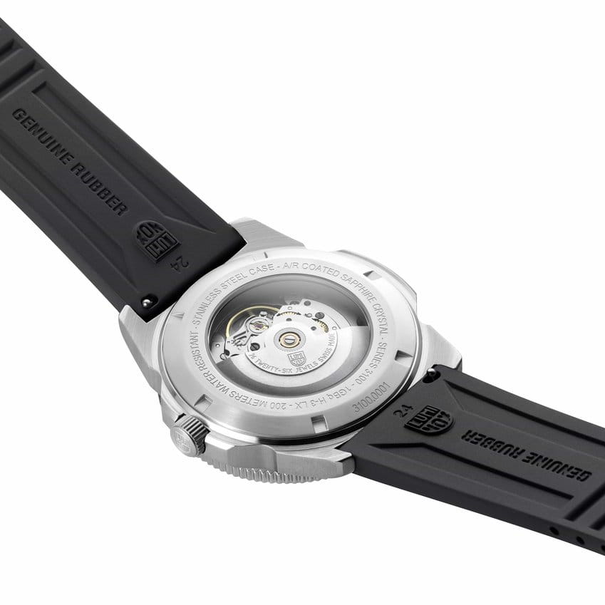 Мужские швейцарские наручные часы Luminox Pacific Diver Automatic XS.3101 олицетворяют собой идеальное сочетание элегантного дизайна и передовых технологий. Оснащены они высокоточным кварцевым механизмом, который обеспечивает исключительную точность и надежность в работе. Циферблат этих часов защищен прочным сапфировым стекломСапфировое стеклоПрочный и надёжный материал из кристалла сапфира синтетического происхождения, характеризующийся особой твёрдостью и устойчивостью к царапинам и повреждениям. с антибликовым покрытиемАнтибликовое покрытиеСлой оксида металла в 0,13-0,3 микрон, благодаря которому стекло часов не бликует и не отражает свет. Антибликовое покрытие уменьшает отражение света в 10 раз, обеспечивая отличную читаемость показателей циферблата., устойчивым к царапинам и обладающим высокой степенью прозрачности, что гарантирует отличное визуальное восприятие информации независимо от условий освещения. Корпус часов выполнен из высококачественной нержавеющей стали 316L, что обеспечивает их долговечность и стойкость к механическим повреждениям. Стрелки с LLTLLTLLT — это автономный механизм подсветки, основанный на использовании микроскопических газонаполненных элементов. Специальные герметичные капсулы из боросиликатного стекла, интегрированные в циферблат, генерируют свечение без необходимости подключения к внешним источникам энергии. Для их работы не требуется ни дополнительный свет, ни механическое воздействие (например, нажатие кнопки). Свечение возникает благодаря химическому процессу: реакция между тритием, заключенным в капсулах, и люминофорным покрытием создает стабильное автономное освещение. Технология обеспечивает энергетическую независимость и долговечность подсветки.-подсветкой, обеспечивают отличную видимость даже в условиях недостаточной освещенности, что делает их удобными для использования в любых условиях. Окошко даты, расположенное на отметке 3 часа, позволяет быстро и удобно узнавать текущее число. Класс водозащиты 200 метров, позволит плавать, нырять и заниматься другими водными видами спорта. Каучуковый ремешок на стандартной застежке обеспечивает комфорт при ношении и универсальность использования. Эти часы, оснащенные автоматическим механизмом Sellita SW 220-1, сочетают в себе безельБезельВнешний ободок, закрепляющий стекло. В спортивных часах так называется поворотное кольцо с делениями на циферблате, выполняет роль таймера – замеряет отрезки времени на шкале. Неподвижный безель – элемент декора. Однонаправленно вращающийся безель на дайверских часах позволяет фиксировать моменты погружения и выныривания на поверхность. из нержавеющей стали с черным ремешком и черной керамической кольцевой вставкой вращается в одном направлении, что подчеркивает их стильный и универсальный характер.